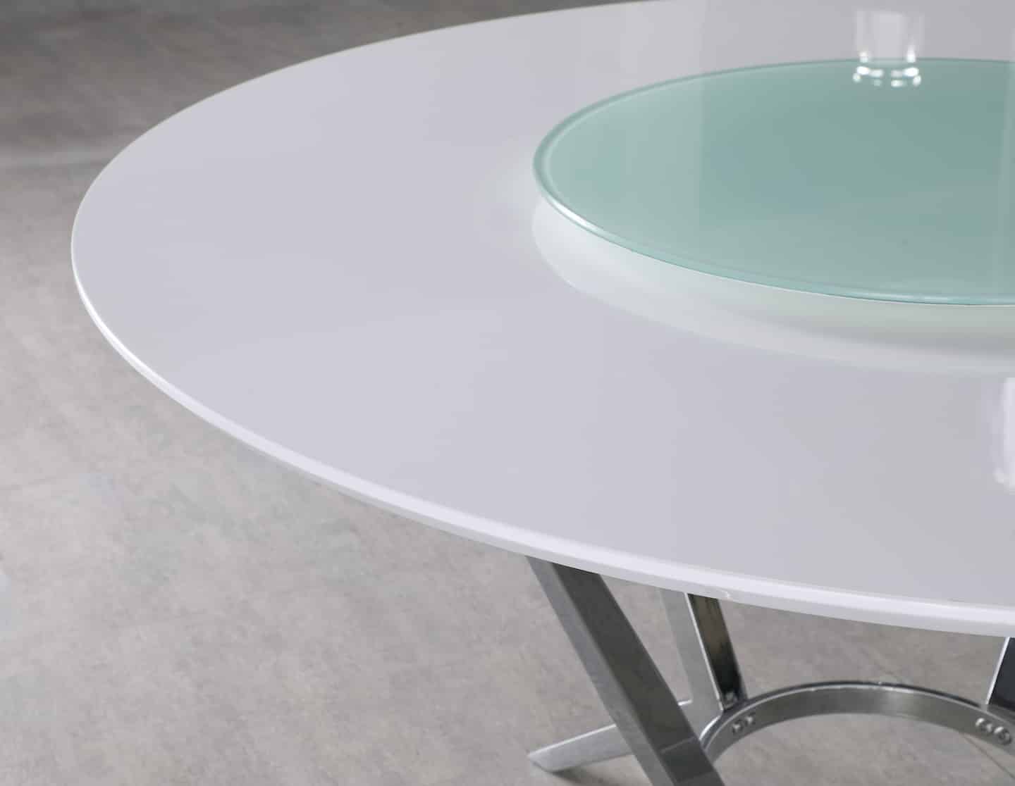 - 54″ Diameter table can seat up to six and comes with a removable white glass lazy susan (24″)