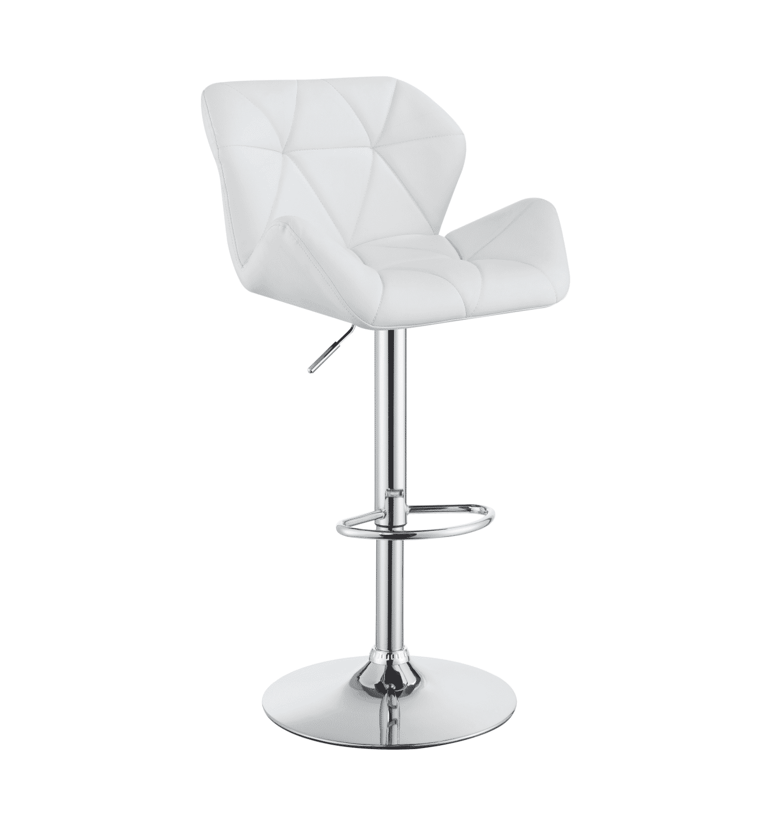 With easy adjustability and sleek, understated style, this gorgeous grey bar stool adds versatile glamour anywhere you choose to dine. Its sturdy metal base has a beautiful chrome finish and includes a round foot pedestal for added comfort. With neutral coloring and a transitional design, it complements a wide variety of decor styles and color motifs. Its height can be adjusted to fit at a bar, table, or counter for a vast array of placement options. With seemingly endless versatility, this stylish stool is ideal for dining areas of all kinds.