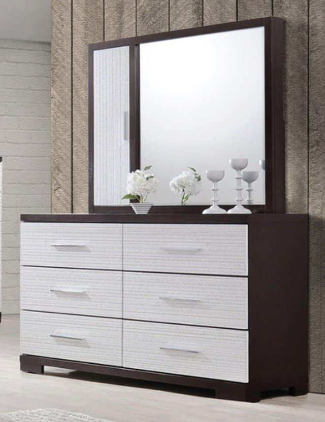 All of our bedroom dressers can be sold individually, our more rustic solid wood dressers can match any style of bedroom. If you have a modern contemporary style home then our gloss white dressers will fit your bedroom perfectly. Some of our more contemporary furniture has chrome and silver accents to bring a real modern feel to your bedroom such as the Voeville champagne gold dresser. A good solid wood dresser can last you a long time! When purchasing a dresser it is always important to keep in mind how long you want this furniture to last. Our higher end solid wood furniture will last you for years to come! Solid wood is easy to upgrade and sell once you want something new in your bedroom.