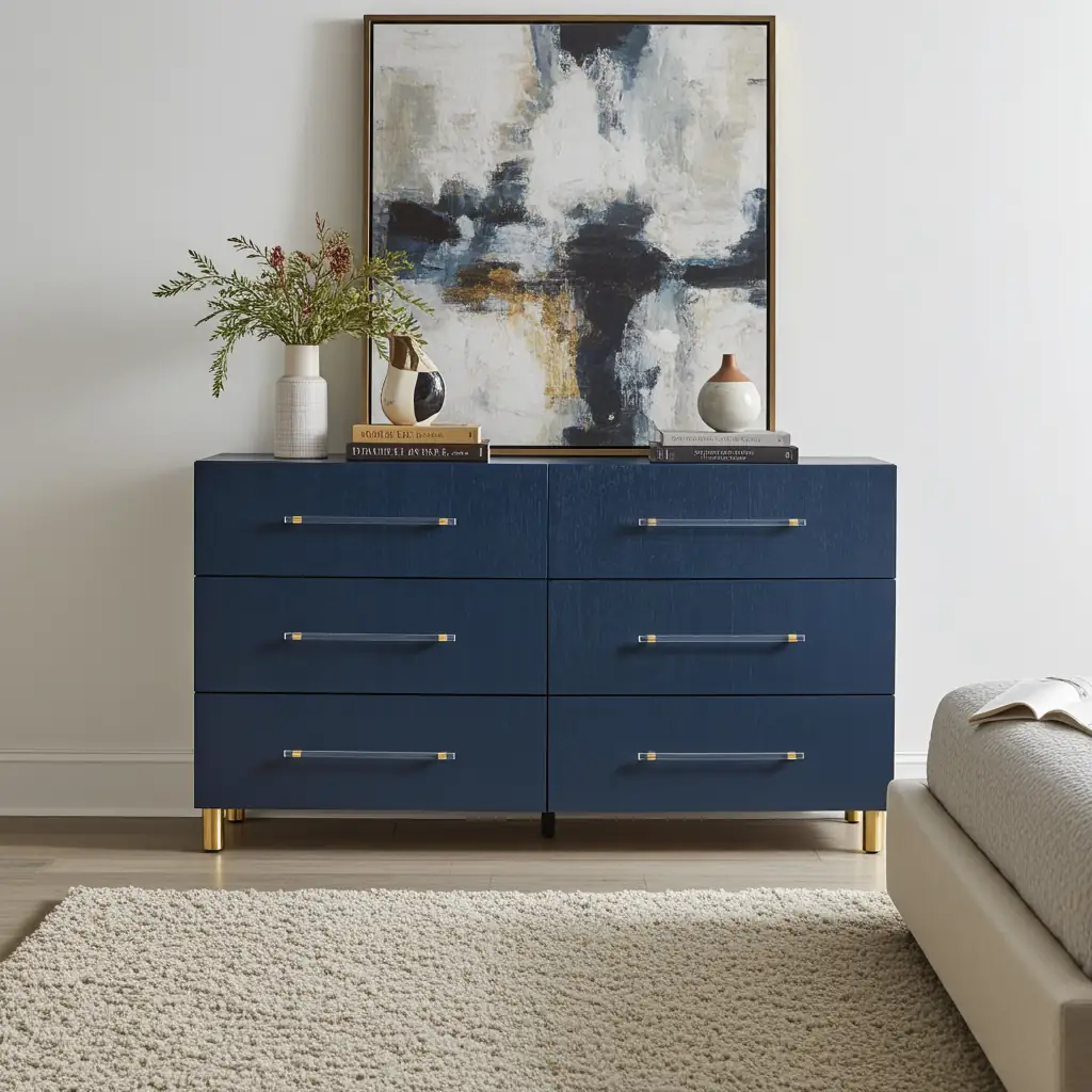 - Rich Navy Blue finish showcases the texture of the wood grain