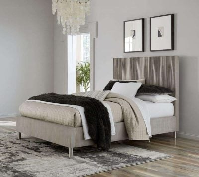 Chic and smart. Made of high-quality Oak, the Argento collection is washed with a Misty Grey Oak finish that showcases the unique grain pattern inherent in the timber. Deep drawers feature elegant pulls made of acrylic and brushed stainless steel while the headboard’s vertical fluting provides a distinctive focal point. Brushed stainless steel legs add industrial touch.