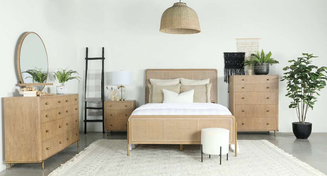 - Product materials: Asian hardwood, plywood, MDF, LVL, white ash veneer, metal, and natural cane