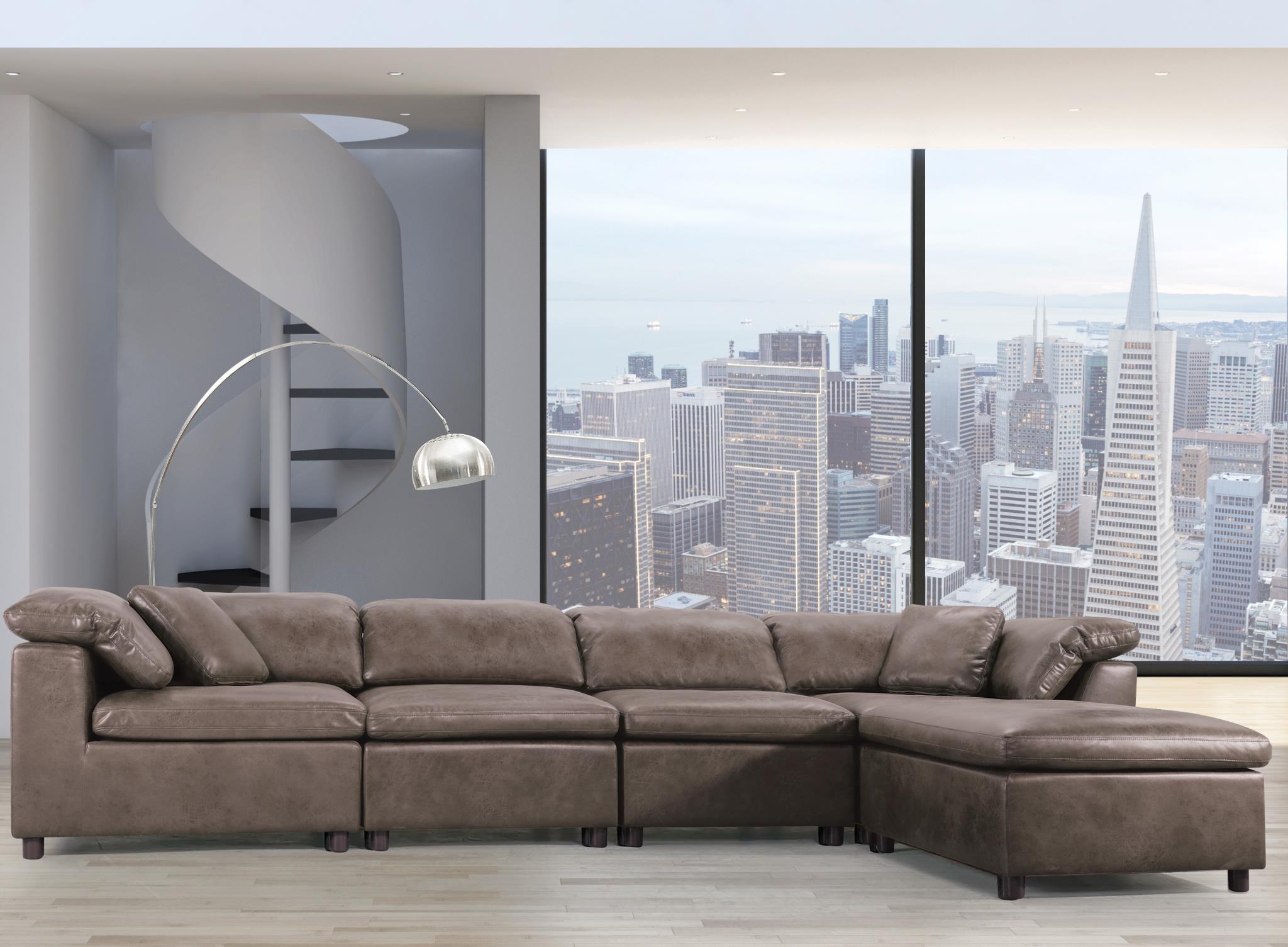 The sleek Audrey modular collection is sure to imbue your living room with a touch of updated and contemporary style. This group comes with multiple seating options of wedge, armless chair and ottoman. Build your own configurations to fulfill any size room.