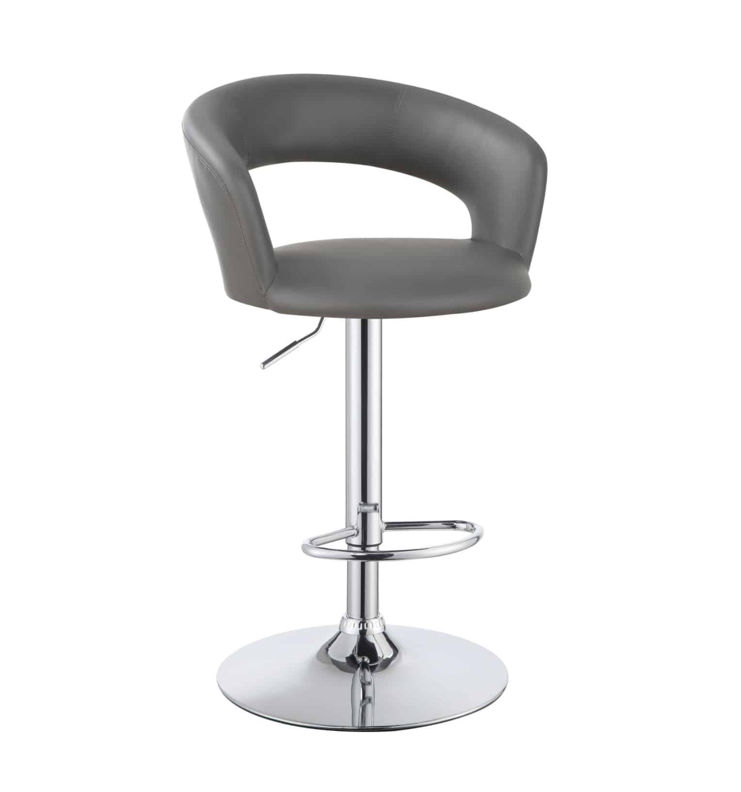 Sleek, elegant, and modern, this barstool is a fashionable choice. With comfortable seating and convenient height adjustability, it’s also exceptionally versatile. Its frame is constructed from high-quality steel for plenty of stable support. Its seat is upholstered in smooth leatherette with a thoroughly appealing texture. A classic, chrome base rounds out its design with pleasing polish and dazzling shine.