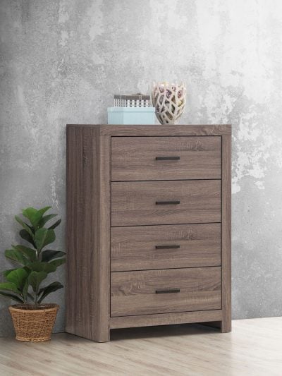 The Brantford Barrel Oak Chest of Drawers combines clean modern lines with warm wood texture for a streamlined bedroom upgrade. Designed with a rich barrel oak finish and dark bronze matte hardware, this oak chest of drawers delivers practical storage while maintaining a crisp, contemporary look.