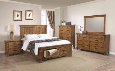 The Brenner storage rustic wood bedroom set features a rustic style design that will warm up your home in the most charming way. Crafted with solid hardwood drawer fronts and case tops, giving the construction a great value.