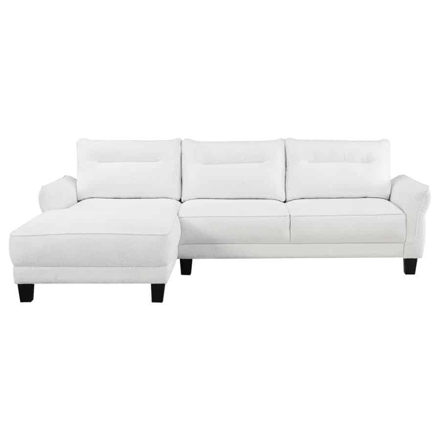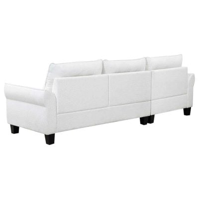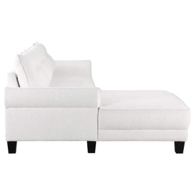 Upholstered in luxurious white polyester, this sectional sofa effortlessly becomes the focal point of any room. The neutral shade not only exudes a sense of tranquility but also offers versatility, seamlessly blending into a variety of interior decor styles. The tufted back frame adds a touch of classic elegance to the design. This intricate tufting not only enhances its visual appeal but also provides an added layer of comfort, ensuring that every moment spent on the sofa is one of relaxation.