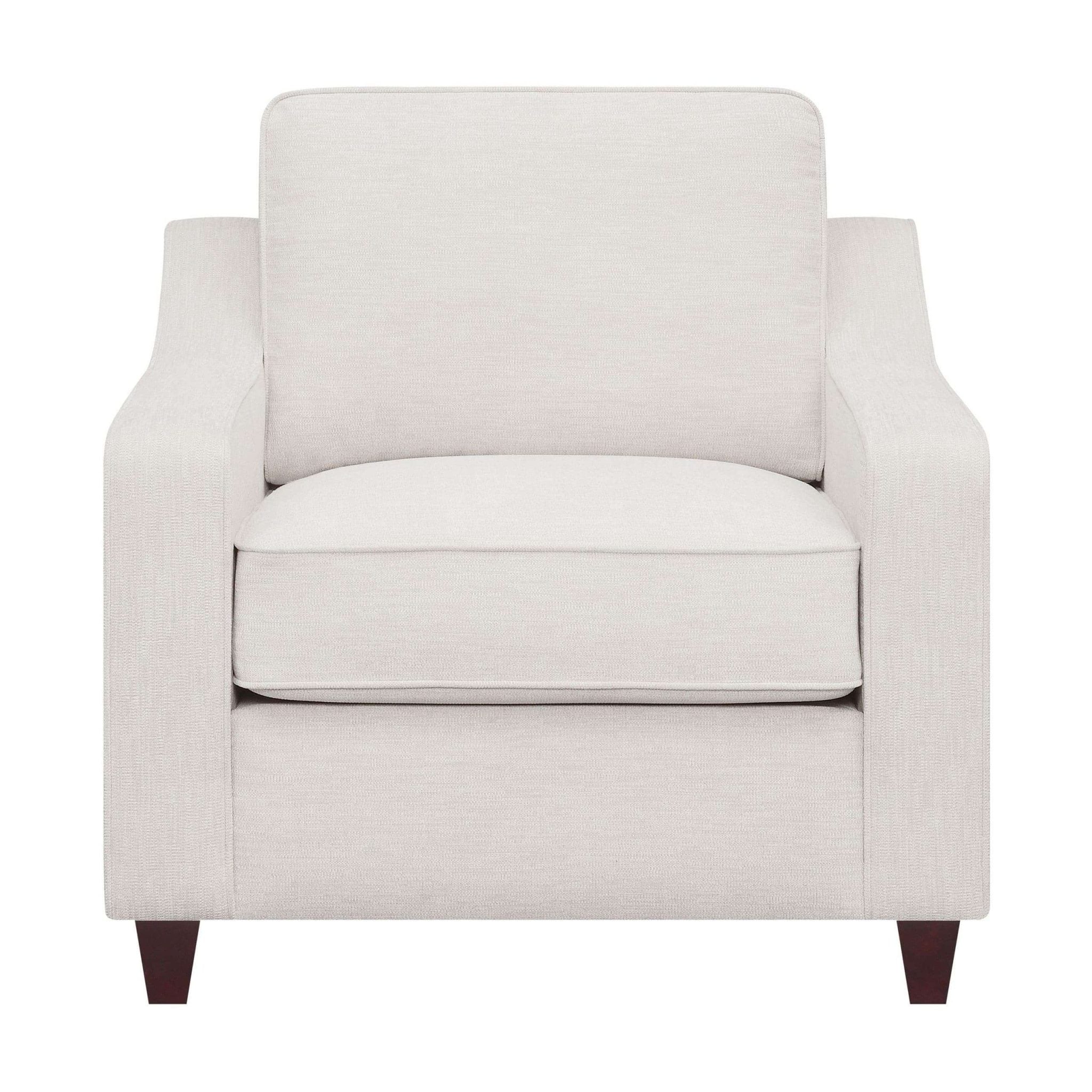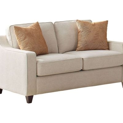 All of our sofas loveseats and chairs are also made with solid woods and upholstered in a fabric or leather. Therefore We have different styles of leather like leatherette, pvc, bonded leather, top grain leather. Our most popular fabric upholstery choices are chenille, linen, polyfiber, velvet, microsuede, micro velvet. A Perfect example of a casual linen sofa set would be our Samuel living room collection. Consider what fabric matches your style living. Always keep in mind if you have pets.