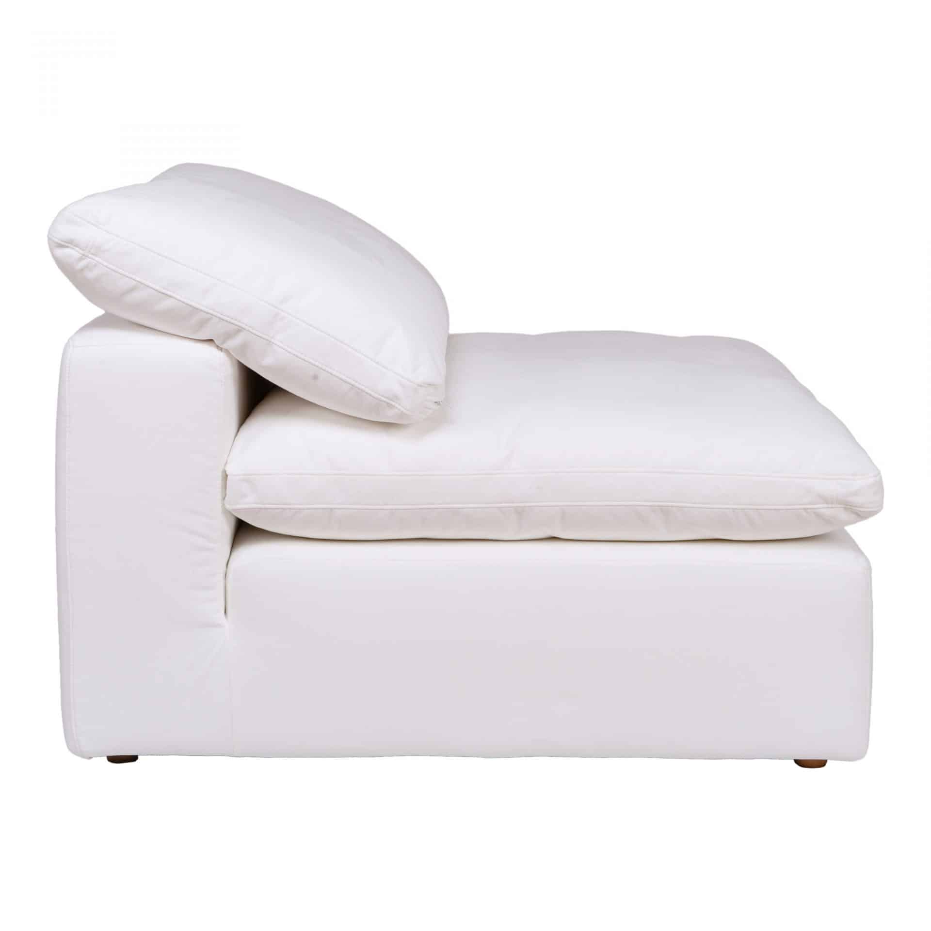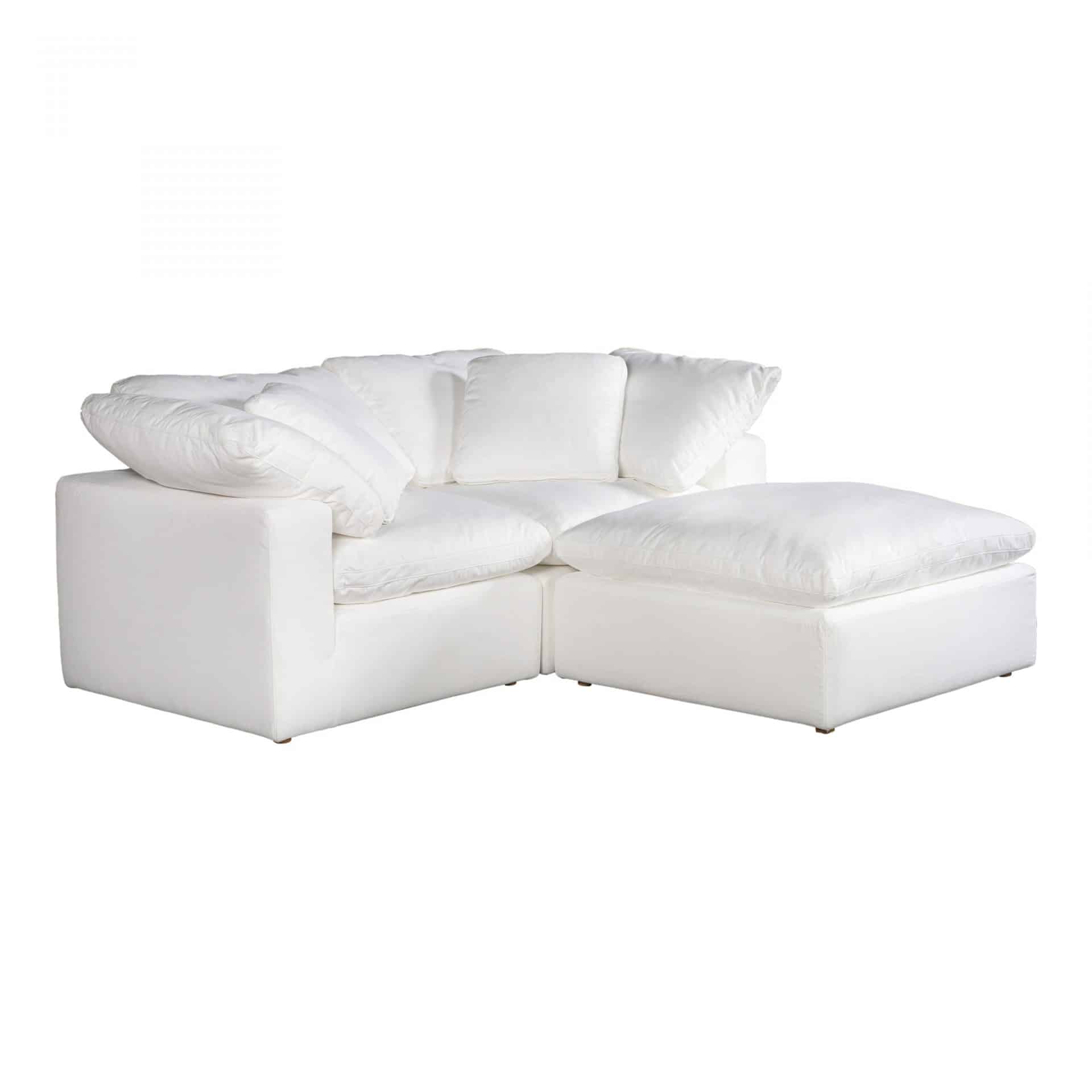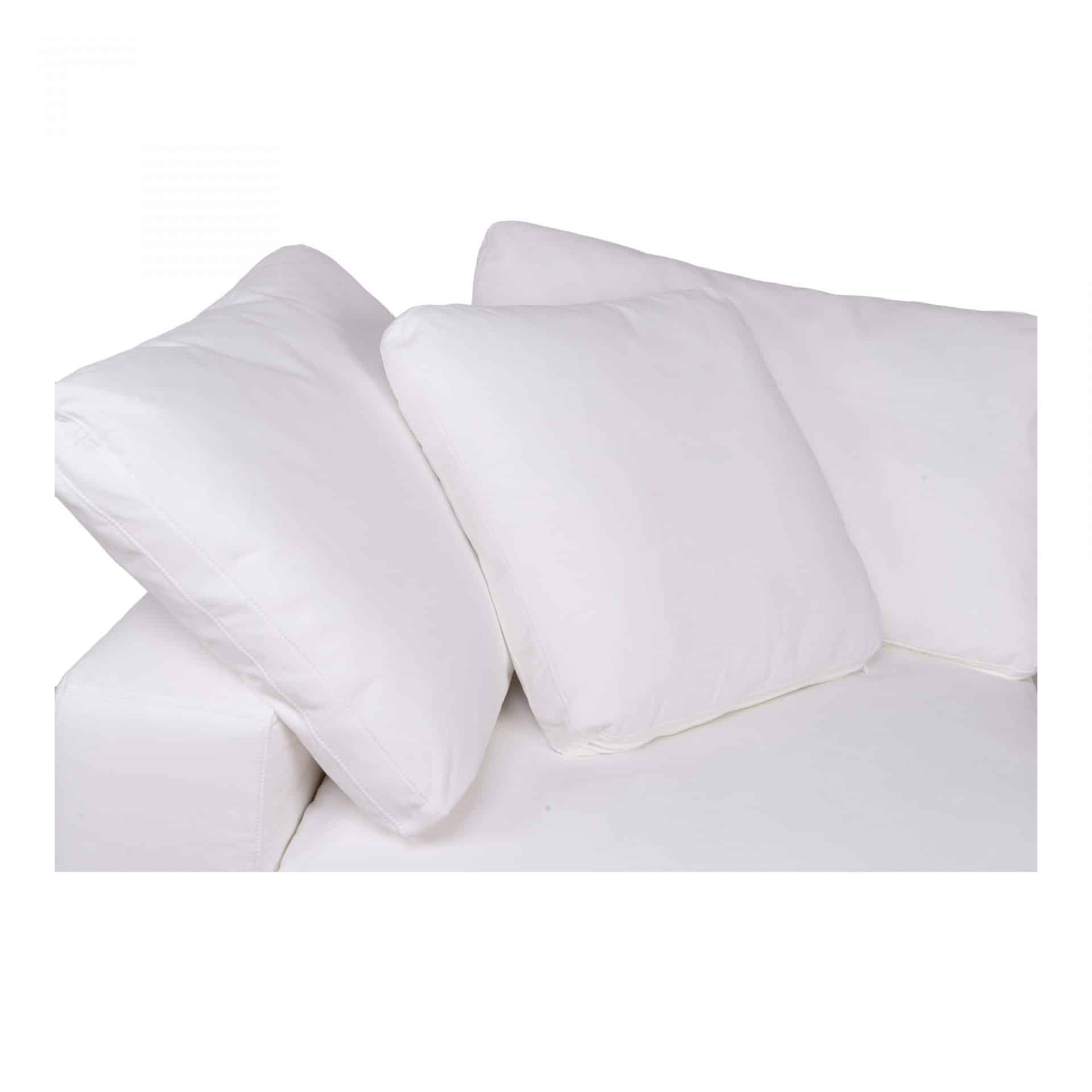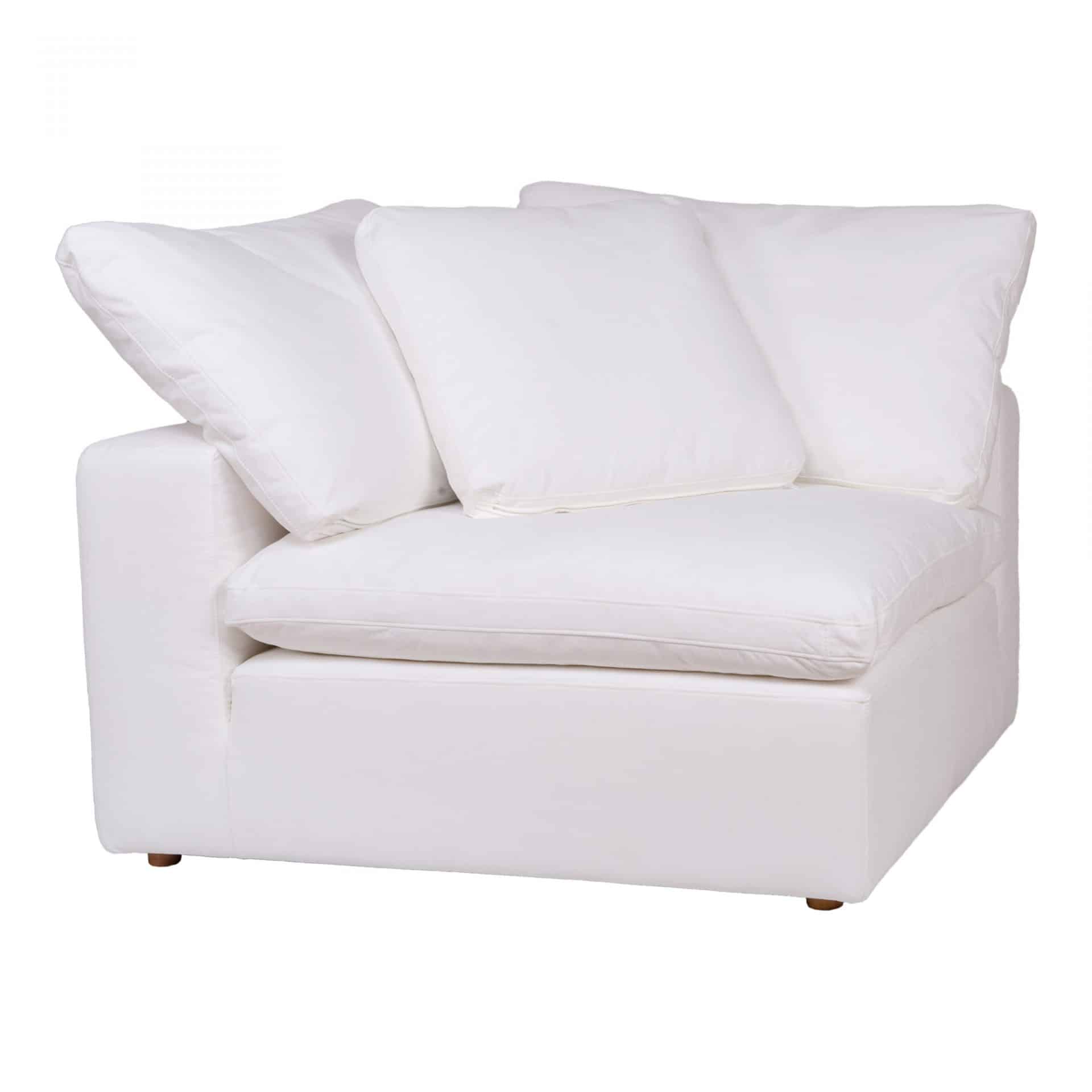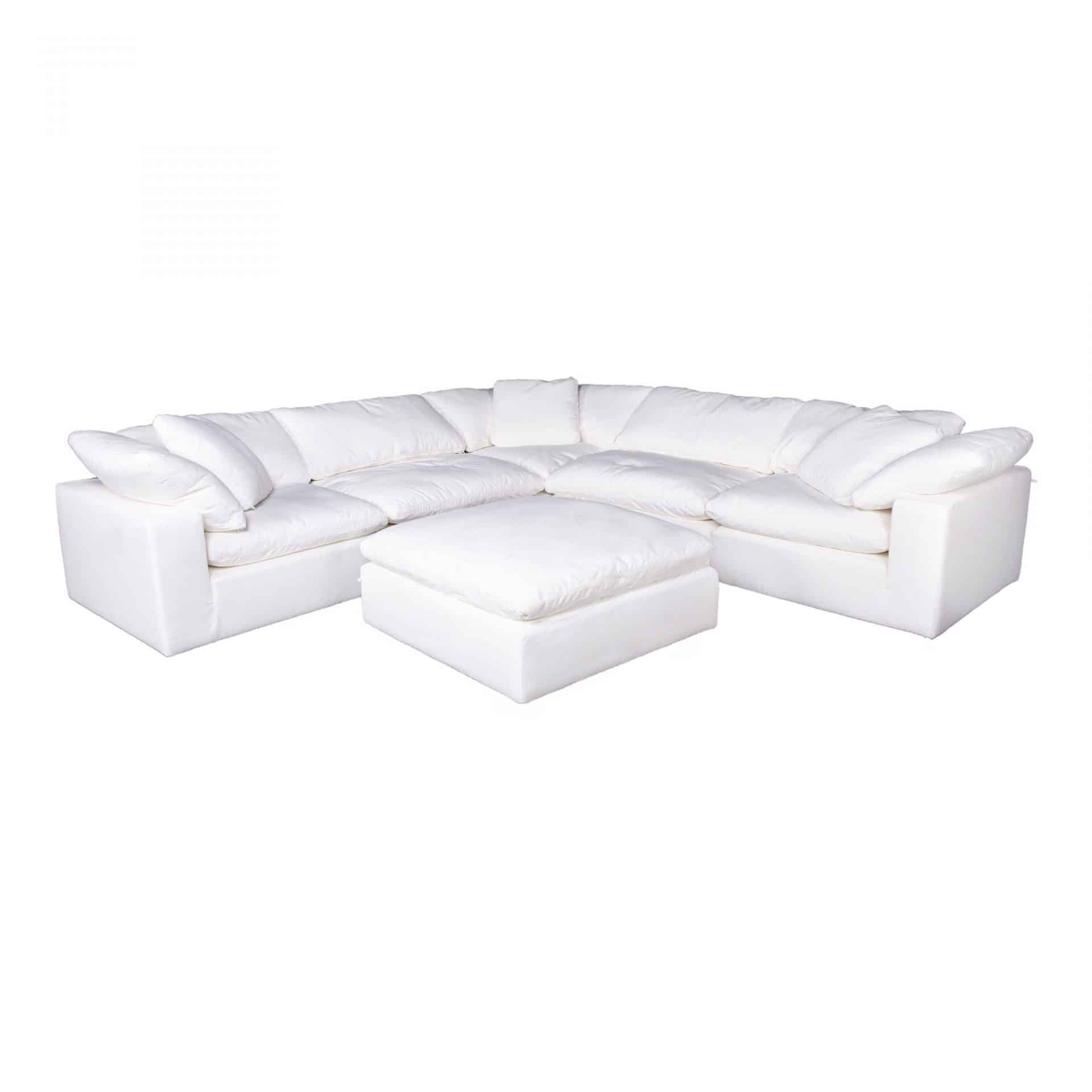 Elevate your living space with the Clay White Stain Resistant Cloud Sofa Sectional. This comfortable modular sectional is the perfect addition to any family-friendly home. Upholstered with LiveSmart Performance Technology Fabric, it is moisture repellent, stain resistant, and offers barrier protection. The cloud style cushions are generously filled with a feather and fiber blend, ensuring exceptional comfort and durability. With a top eight inches of foam-filled cushioning, you will sink into this ultra-comfortable white cloud sofa. The modular design allows for customizable configurations, and the minimal maintenance required makes it easy to keep your White Cloud Sectional Sofa looking its best. Truly a great value addition to any White Stain Resistant Couch.