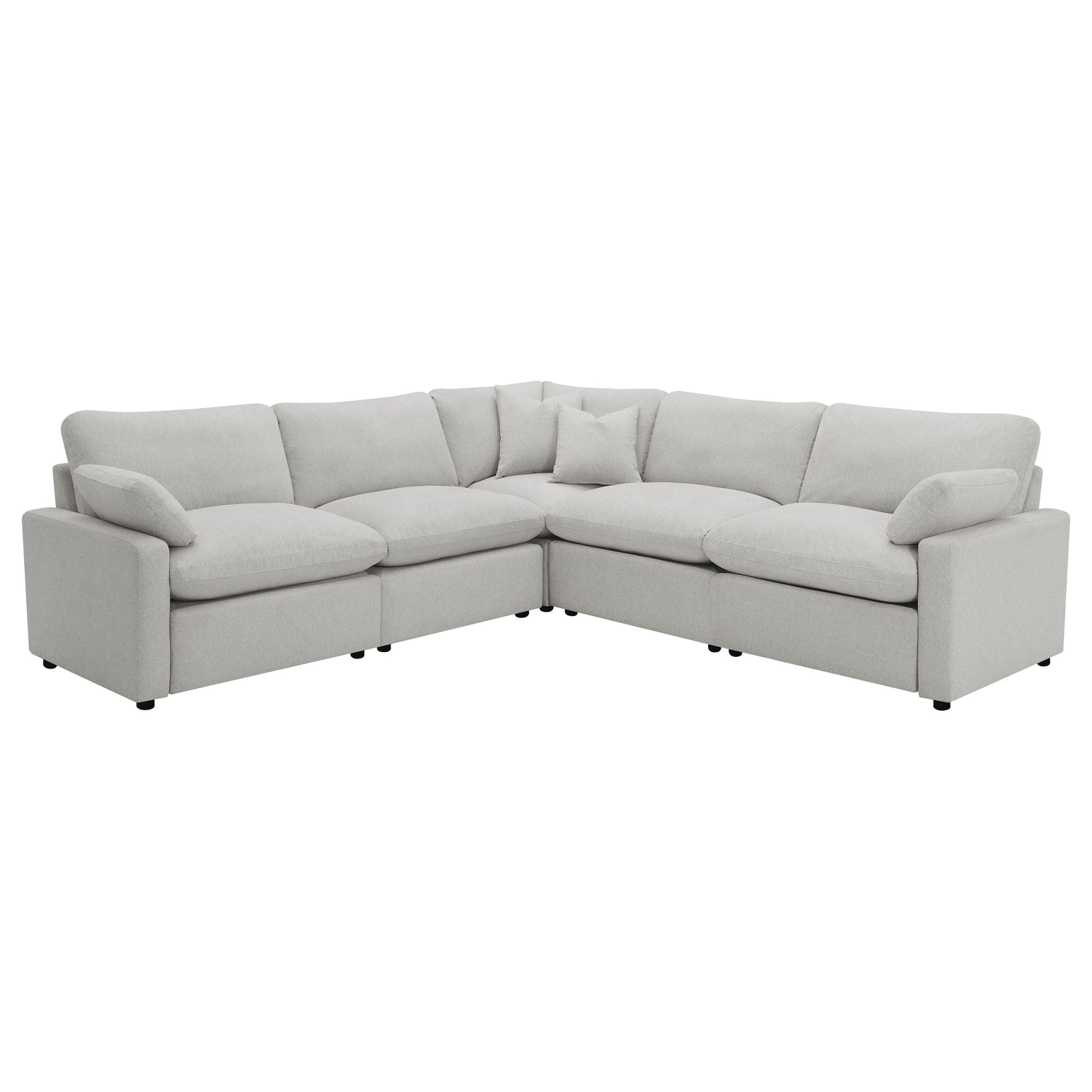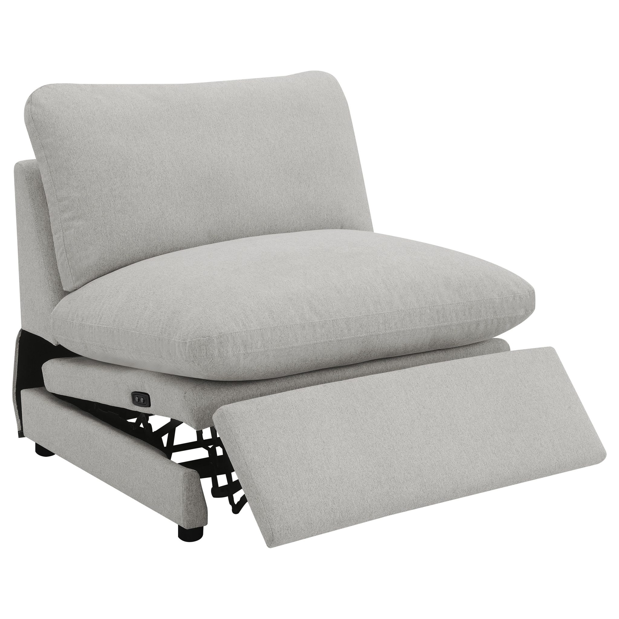 The Collins Gray Modular Reclining Sofa combines versatile design with power comfort. Featuring three power reclining pieces and two stationary sections, this sectional adapts perfectly to your space. Premium down-like cushioning and wall-hugging technology ensure maximum comfort without requiring excessive room. Perfect for those seeking customizable luxury with modern convenience.