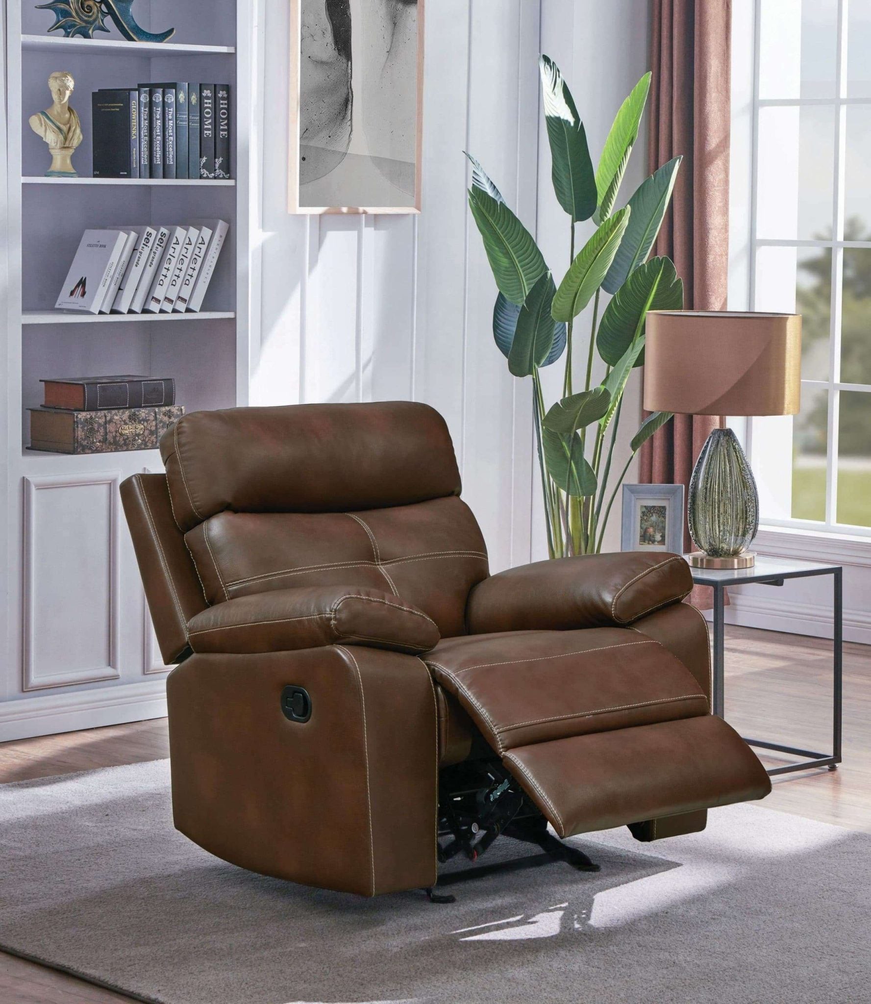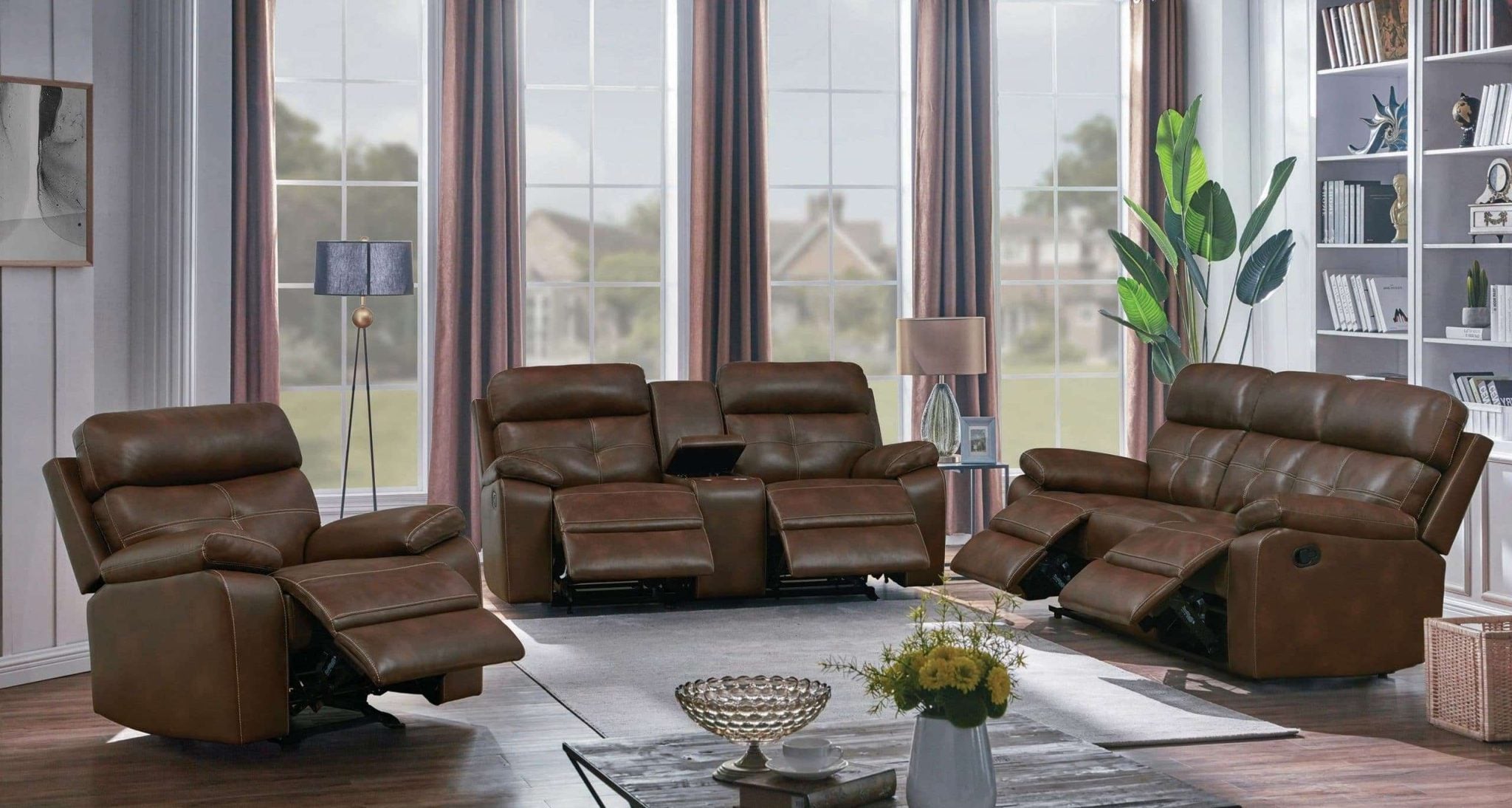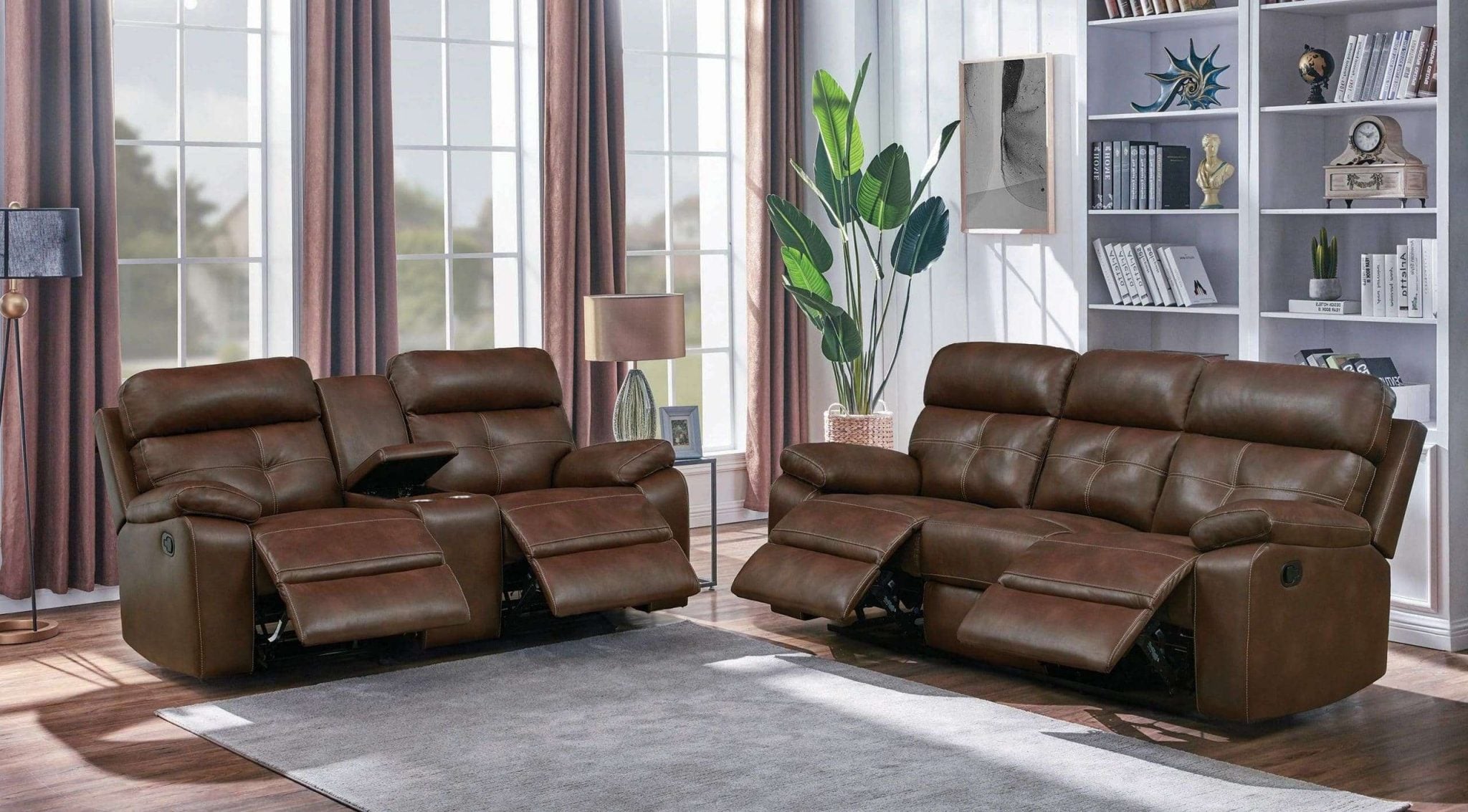 Damiano Modern Reclining Brown Leather Sofa Set