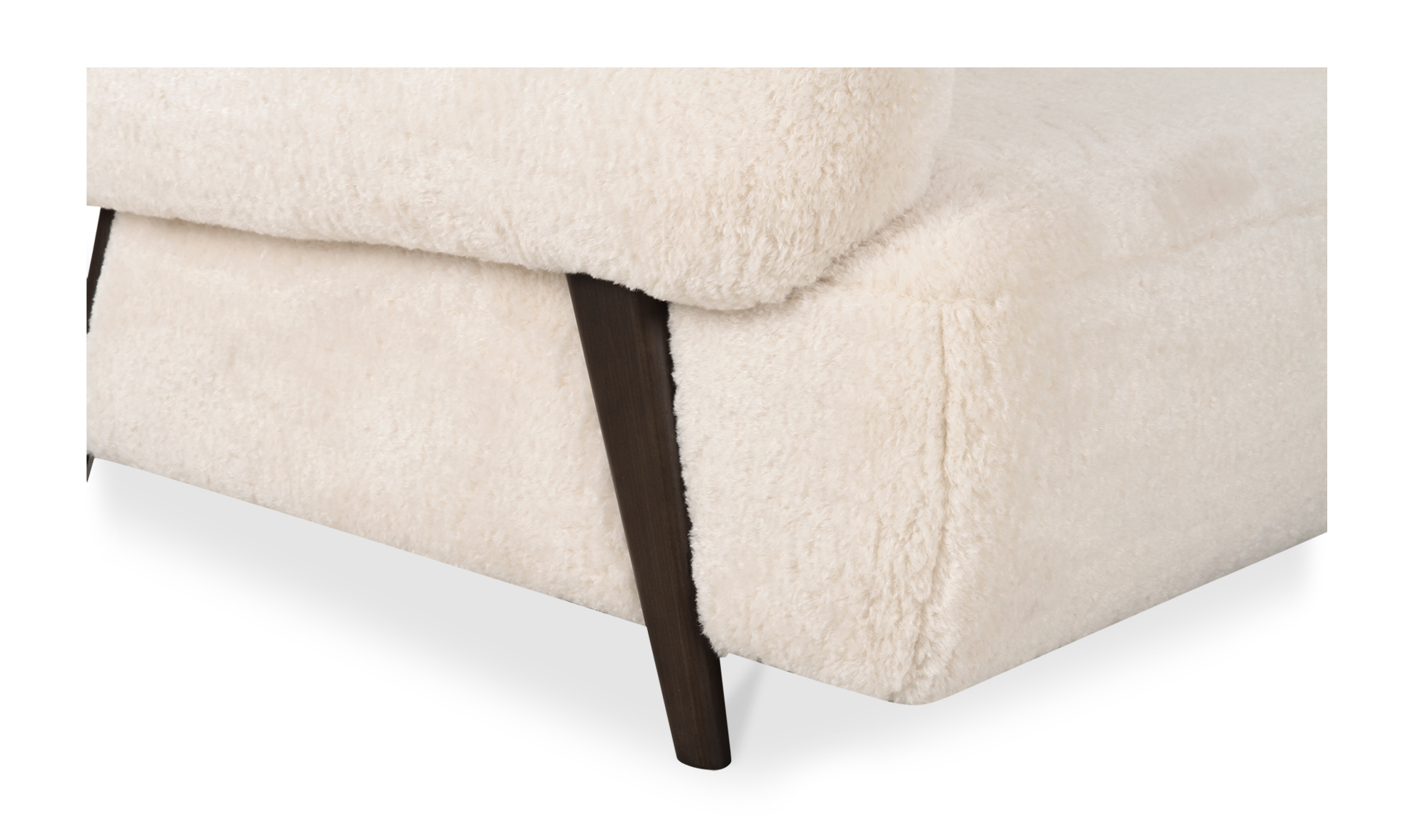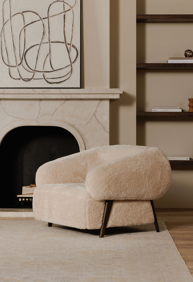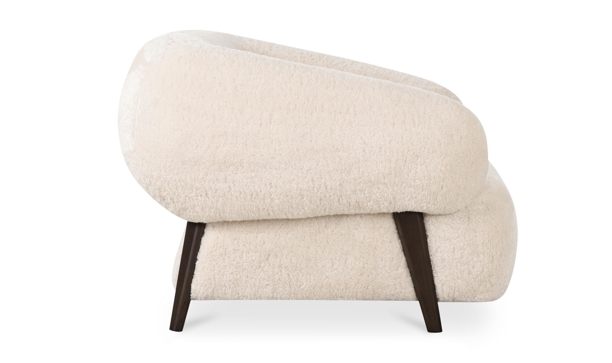 The Devlin Cream White Fur Large Lounge Chair offers an oversized, plush seating experience with a deep, curved back and soft faux fur upholstery. Supported by solid ash legs and a plywood frame, this chair blends modern aesthetics with luxurious comfort. Its generously cushioned seat and squared base create a striking silhouette, making it a standout accent in any room. The faux white fur upholstery adds texture and warmth, making it a stylish and inviting choice for contemporary spaces.
