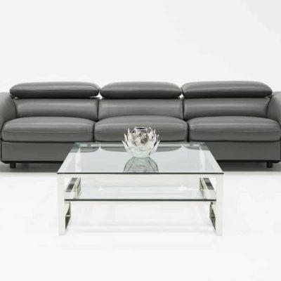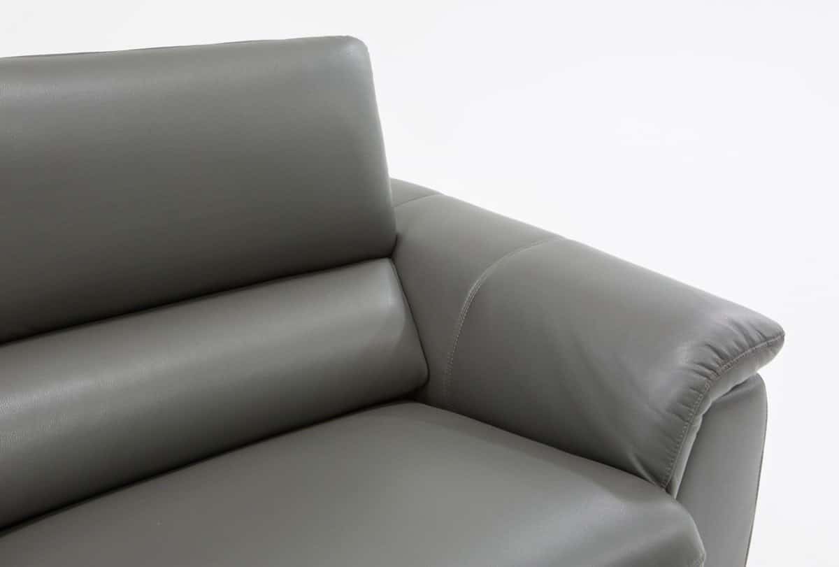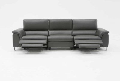 The Divani Casa Maine features Italian Grey leather upholstery with power electric reclining seating and adjustable headrest. This double padded cushion sofa is the comfortable stylish piece of furniture you have been looking for. With Modern stainless steel legs and detailed stitching you do not have compromise comfort for that modern look.