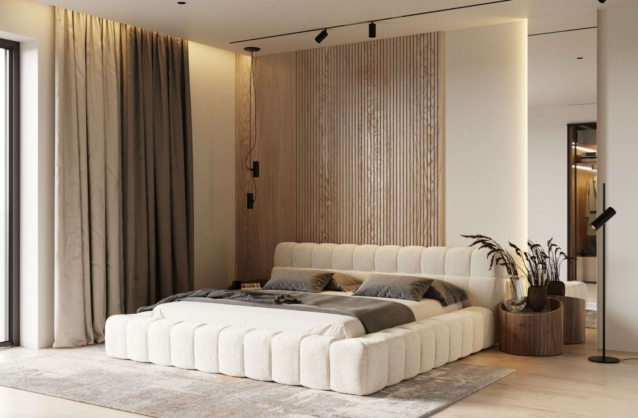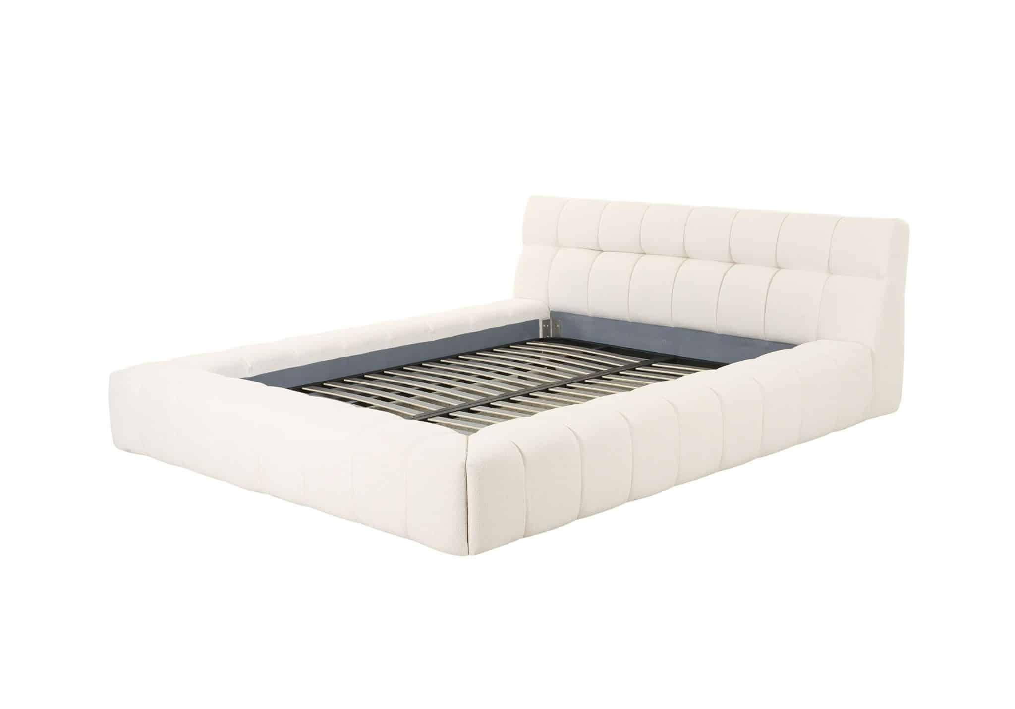 The Tyree Bed offers a plush sleeping experience with its cream-white, 100% polyester upholstery. Its modern design is accentuated by horizontal lines and a tufted headboard. Fully padded for a cloud-like feel, it’s perfect for reading or watching TV. The bed is designed with a solid wood frame for durability, and the inclusion of slats means there’s no need for a box spring. Elevate your bedroom aesthetics with this luxurious yet functional piece, making every night a lavish affair. Choose the Tyree Bed for a fusion of style and comfort.