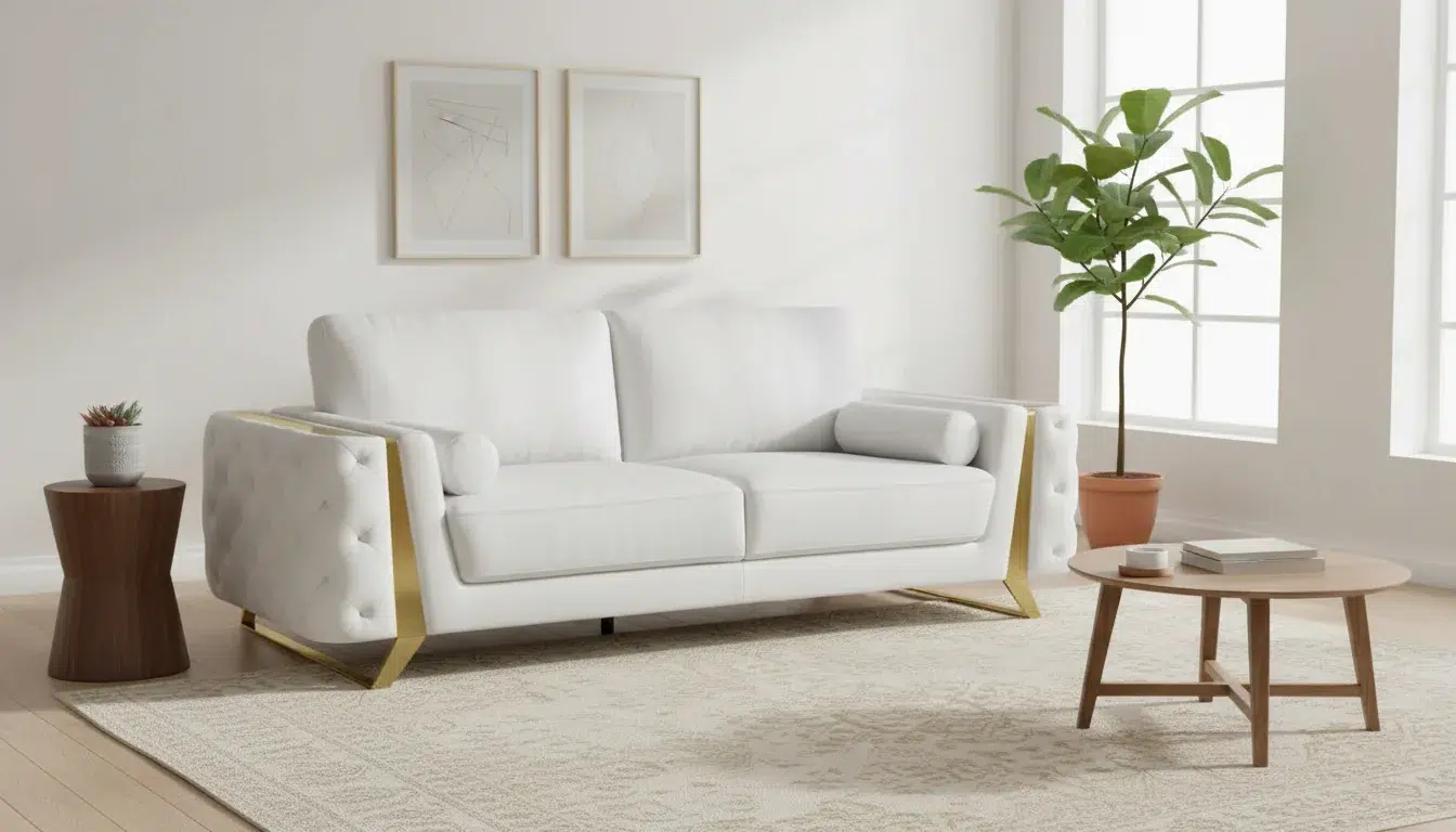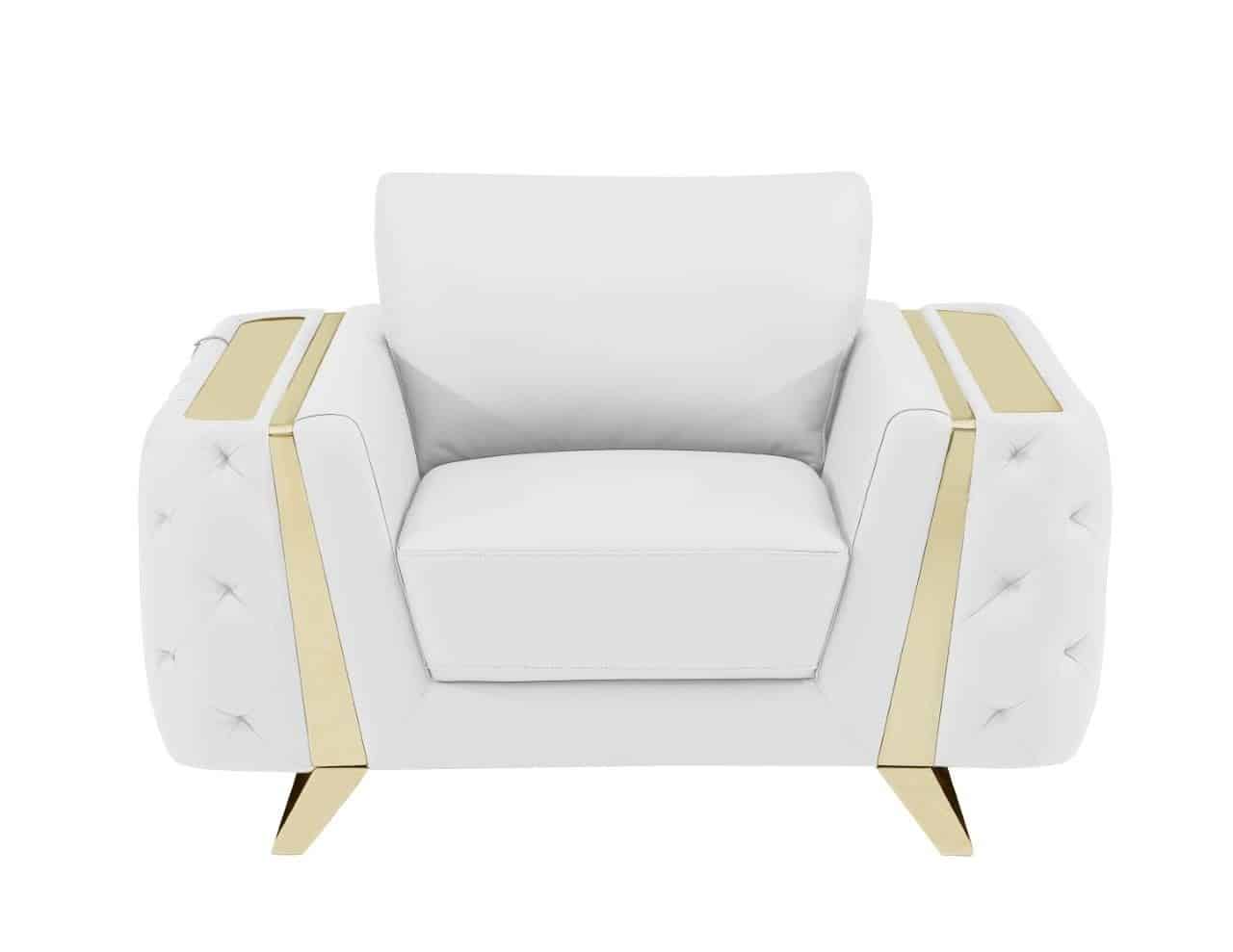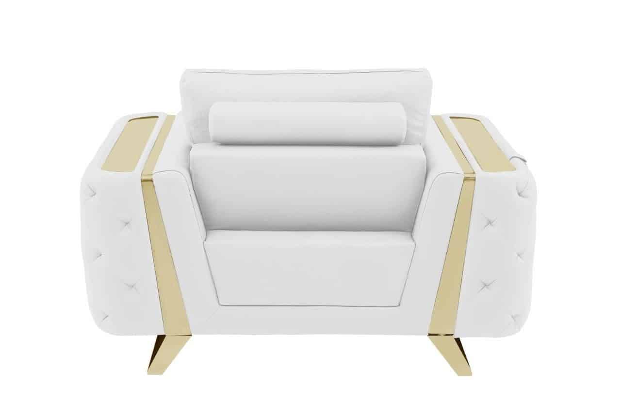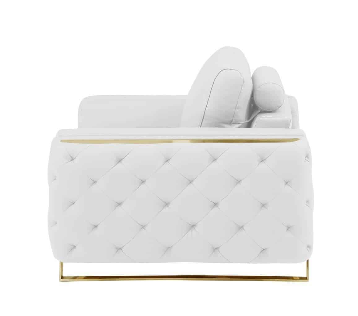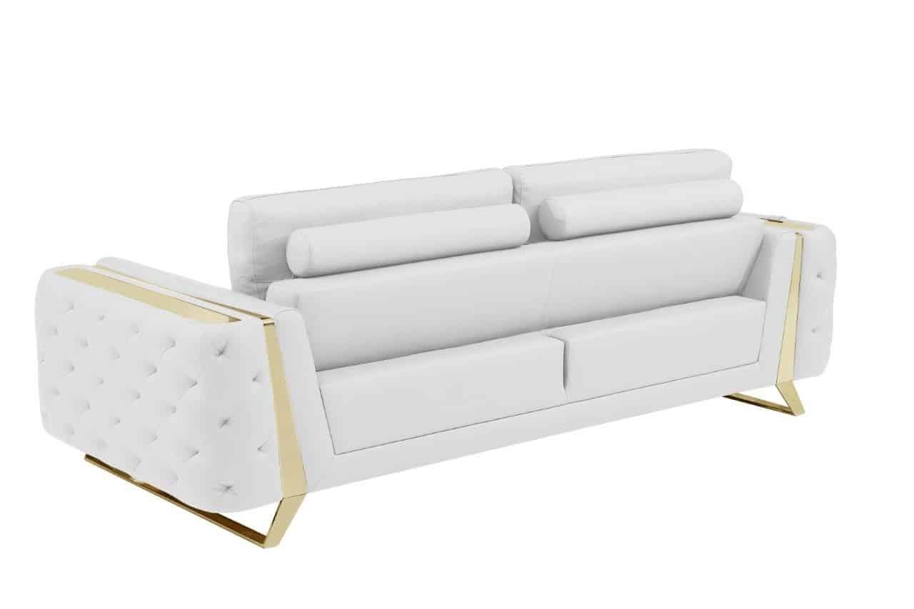 Divanitaly Salento White Italian Leather & Gold Sofa Set