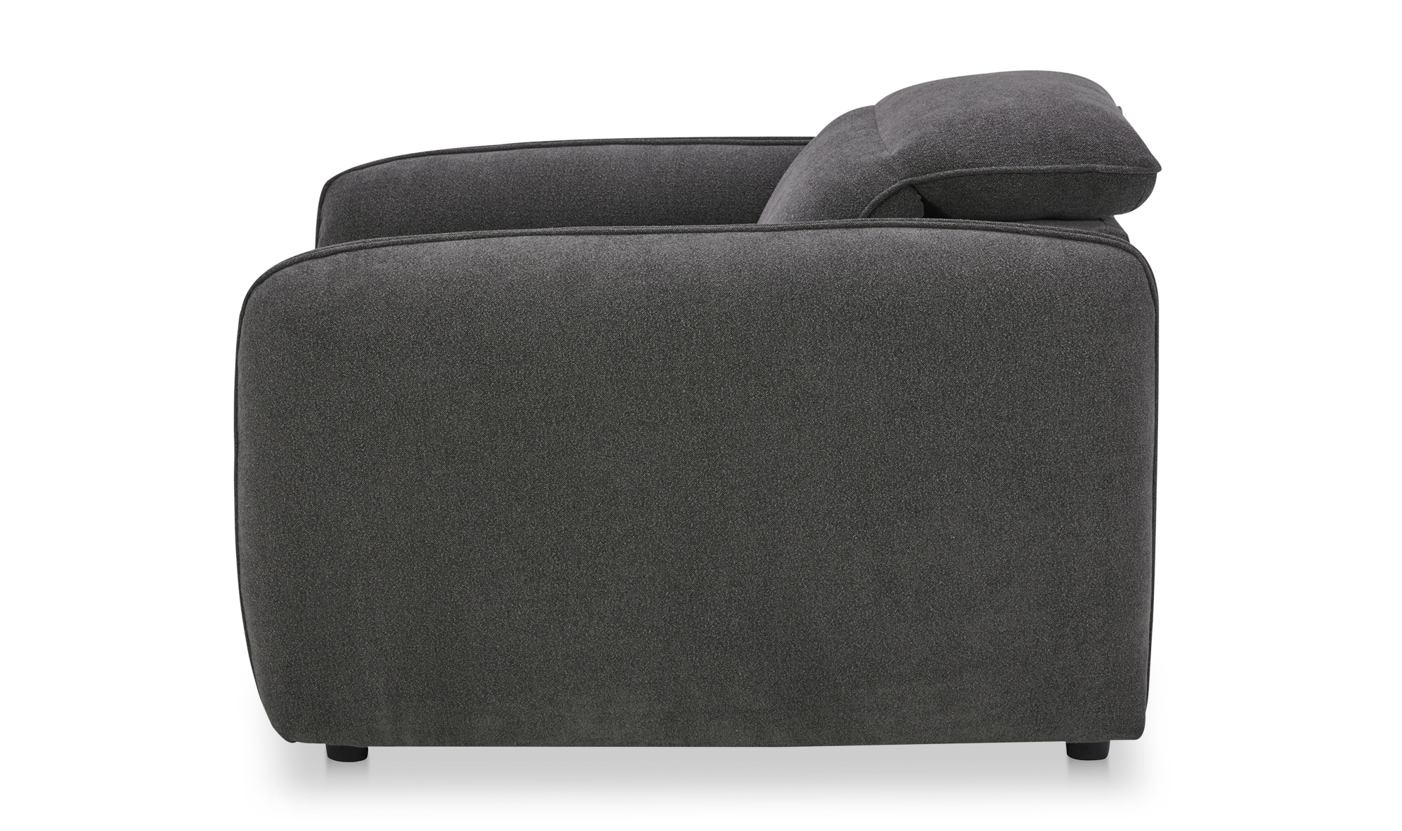 The Eli Soft Fabric Dark Gray Power Recliner Sofa offers a plush and modern seating experience. Upholstered in soft 100% polyester fabric, it features a feather-filled seat with high-density foam for superior comfort. A power motion footrest and headrest allow for personalized reclining positions, controlled by discreet buttons inside the arm. The solid wood and plywood frame ensures durability, while black plastic legs provide a sleek finish. Whether for lounging or entertaining, this grey power recliner sofa blends style and relaxation, making it a perfect addition to contemporary living spaces.