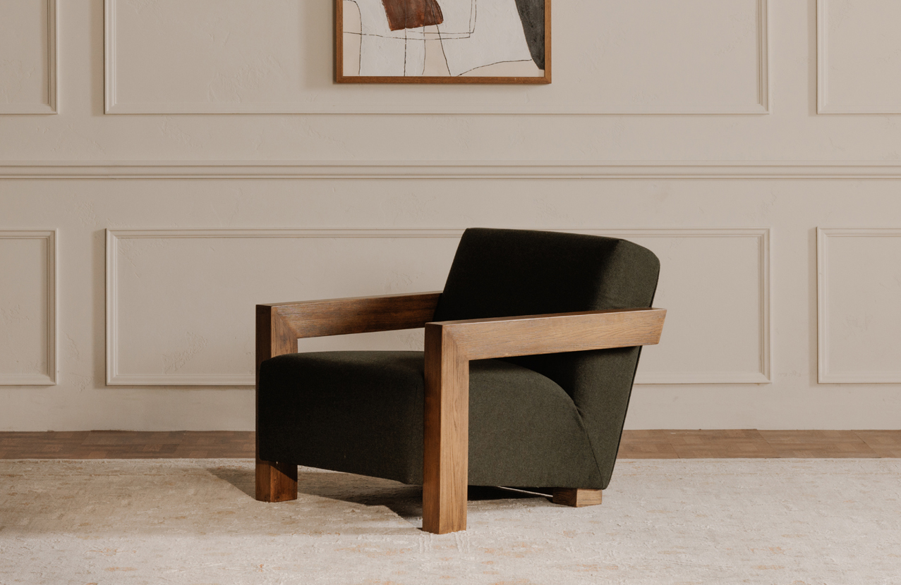 The Garnet Olive Green Wool & Solid Oak Accent Chair blends vintage appeal with modern durability. Crafted with a solid oak frame in a warm, aged stain, this olive green accent chair highlights the wood’s expressive grain. The plush wool-blend upholstery offers a soft, inviting texture, while its blocky form creates a bold yet timeless silhouette. Certified by OEKO Tex Standard 100, the fabric meets sustainability standards, making it a responsible choice for stylish interiors. Whether used as a statement chair or a cozy lounge seat, this piece adds warmth and sophistication to any space.