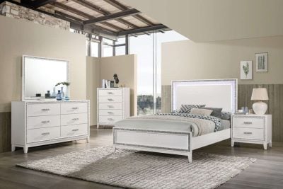 Haiden White Bedroom Set with LED Lights