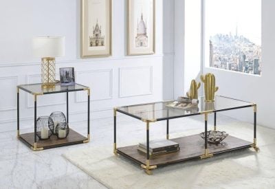 The Heleris Accent Table Group features a contemporary design with gold accents.