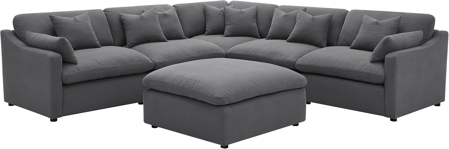 The Hobson Gray Modular Cloud Sectional Couch offers the perfect mix of modern design and ultimate comfort. Upholstered in soft, stain-resistant gray fabric, this modular sofa features deep feather-blend cushions that create a cloud-like seating experience. The fully encased solid wood frame ensures durability, while its modular layout allows you to customize the configuration to fit your space. Whether you need a gray l-shaped couch or a spacious gray modular sofa, this sectional adapts to your needs. Its timeless look and cozy feel make it a standout choice for any living room.