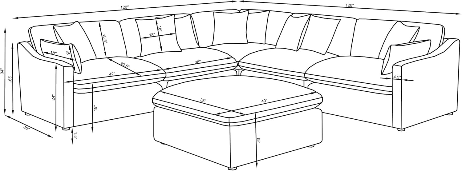 5 PC Sectional (as shown) Includes Left Chair, Right Chair, 2 Armless Chairs, Corner