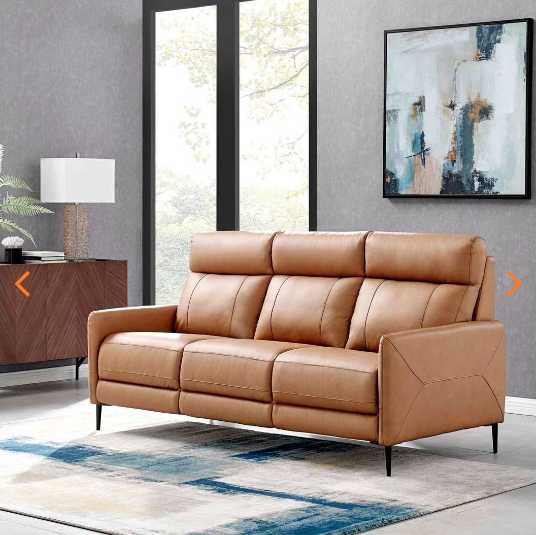 Bring luxe comfort and rich style to your living room, bedroom sitting area, or office with the Huxley Leather Sofa. With a high back design perfect for long lasting support, this leather sofa abounds in modern charm and practical functionality. Upholstered in comfortable quality leather, this living room sofa is complete with dense foam padding and a no-sag spring support system. The frame of this leather sofa is crafted with solid wood, and it rests on black powder-coated steel legs with non-marking foot pins.