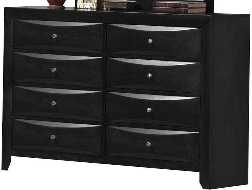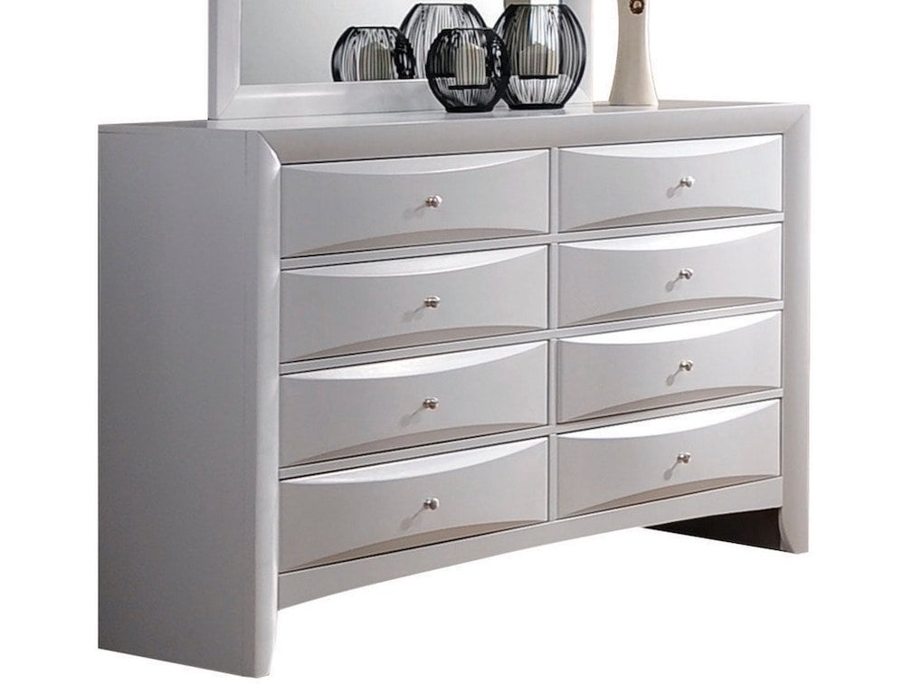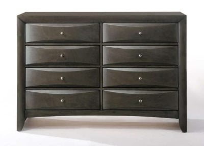 The Ireland casual wood dresser features brushed nickel hardware with english dovetail finished metal gliding drawers! 8 drawers for extra storage space!