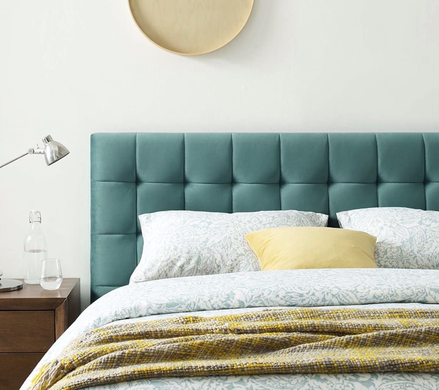 Anchor your bedroom with the charm and sophistication of the Julia Queen Platform Bed. Julia’s sturdy, low-profile plywood frame sits atop four splayed and tapered wood legs for an open expanse of restful luxury. Mid-century elegance sweeps into your master suite or guest room decor with Julia’s biscuit tufting and polyester fabric upholstery that spans both headboard and frame. Julia’s soft and durable fabric upholstery covers dense foam padding creating the perfect recline for resting, conversing or reading in bed. Julia comes with a wood slat support system that eliminates the need for a box spring and accommodates memory foam, spring, latex, and hybrid mattresses.