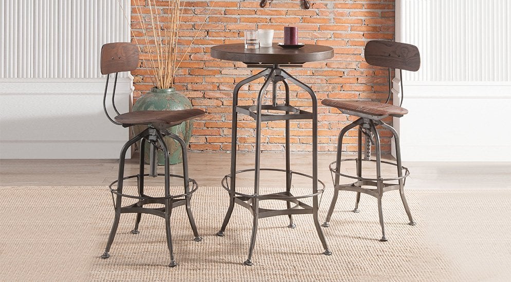 The Kaeso rustic industrial Bar Set features a rustic, industrial style.
