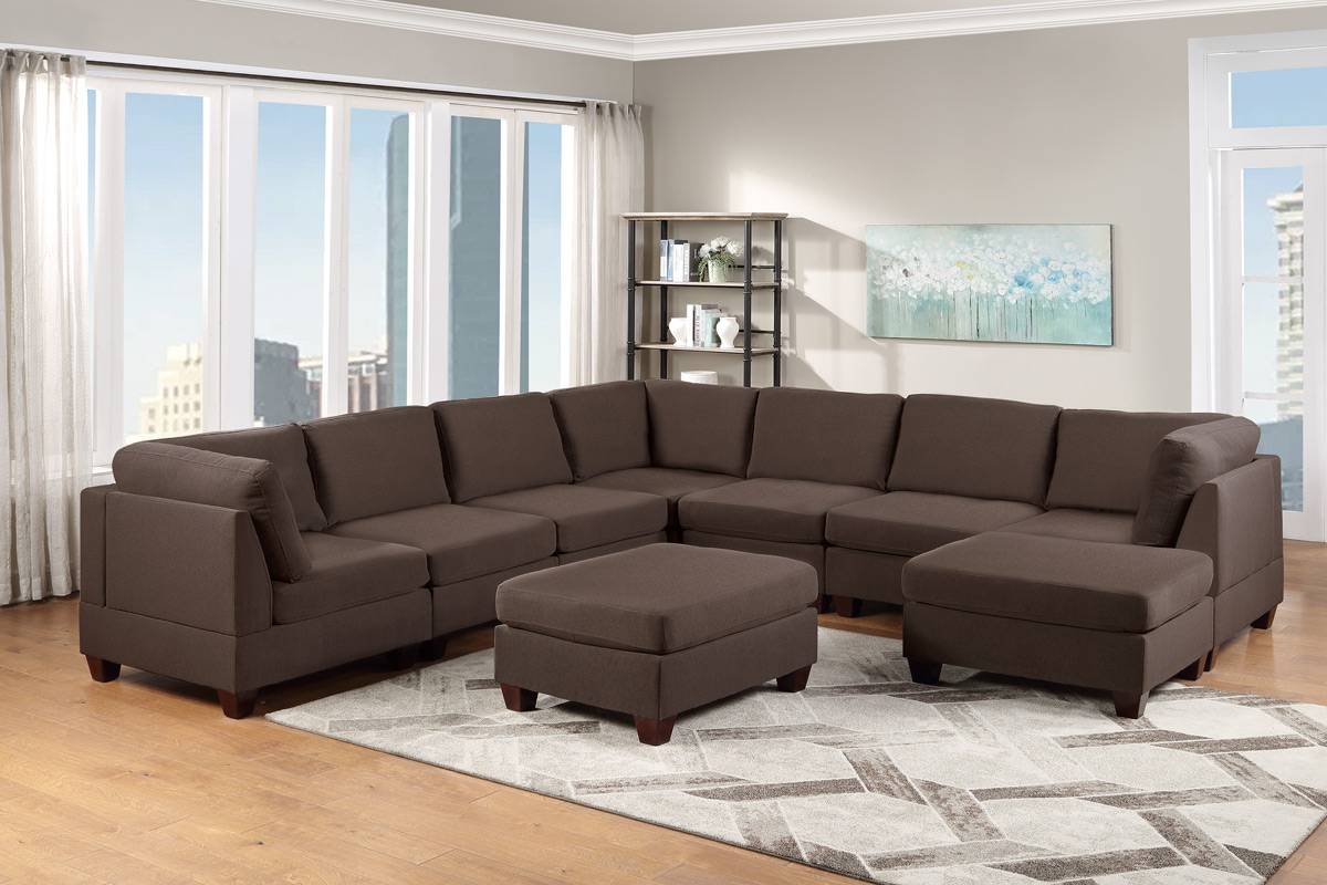 Our Keymar brown fabric sectional sofa is Designed to be modern and minimal, this elegant sectional sofa set is adjustable to fit room of all sizes. WIth optional corner sofa, armless chair and cocktail ottoman, you can create a set that fit your exact need. Let this piece bring the most optimal comfort to you and your guests.