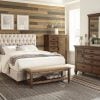 A large selection of our Acme bedroom sets are in their natural wood tone color. However some are also painted in a large selection of colors to match your bedroom. More of our modern Grako furniture bed frames are finished in a gloss white or Black. We also have more glam colors like Gold, Silver or Platinum. A good example of a contemporary gold bed is our Voeville gold collection. Our more Rustic beds are also usually in a natural wood finish. Our industrial Bedroom chests also have a mixture of hard woods and industrial metals.