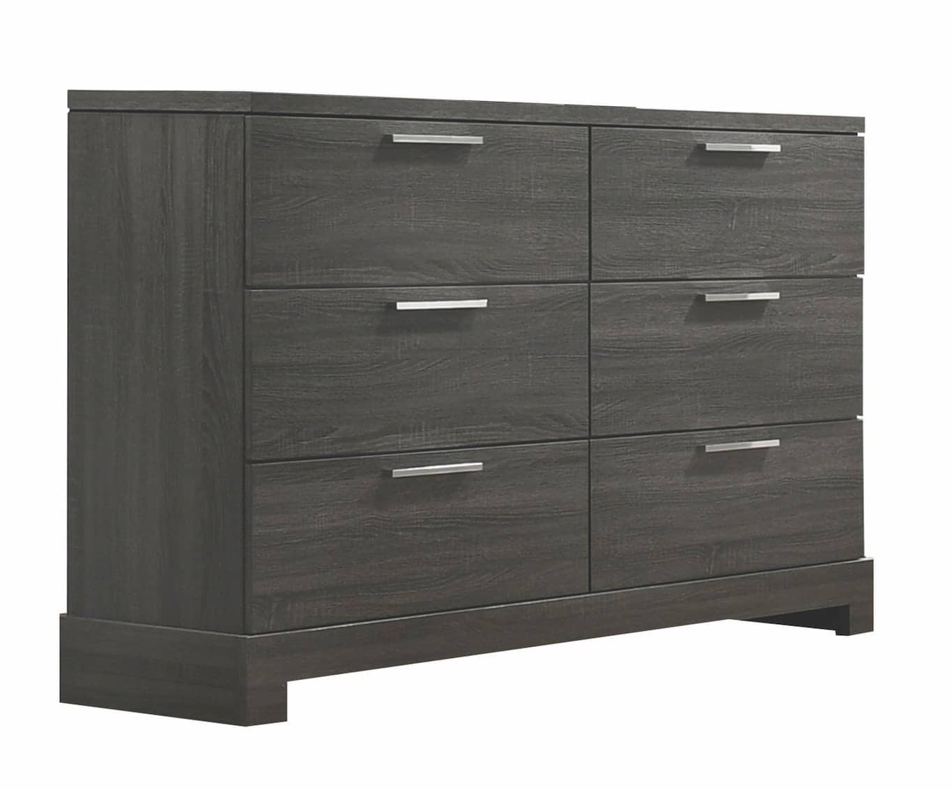 This modern gray bedroom dresser blends clean lines with subtle wood grain details, making it easy to style in both modern and transitional bedrooms. The metal hardware adds contrast, while the warm gray tones soften the overall look. It also pairs well with upholstered designs found in our upholstered bed collection for a balanced, layered bedroom aesthetic.