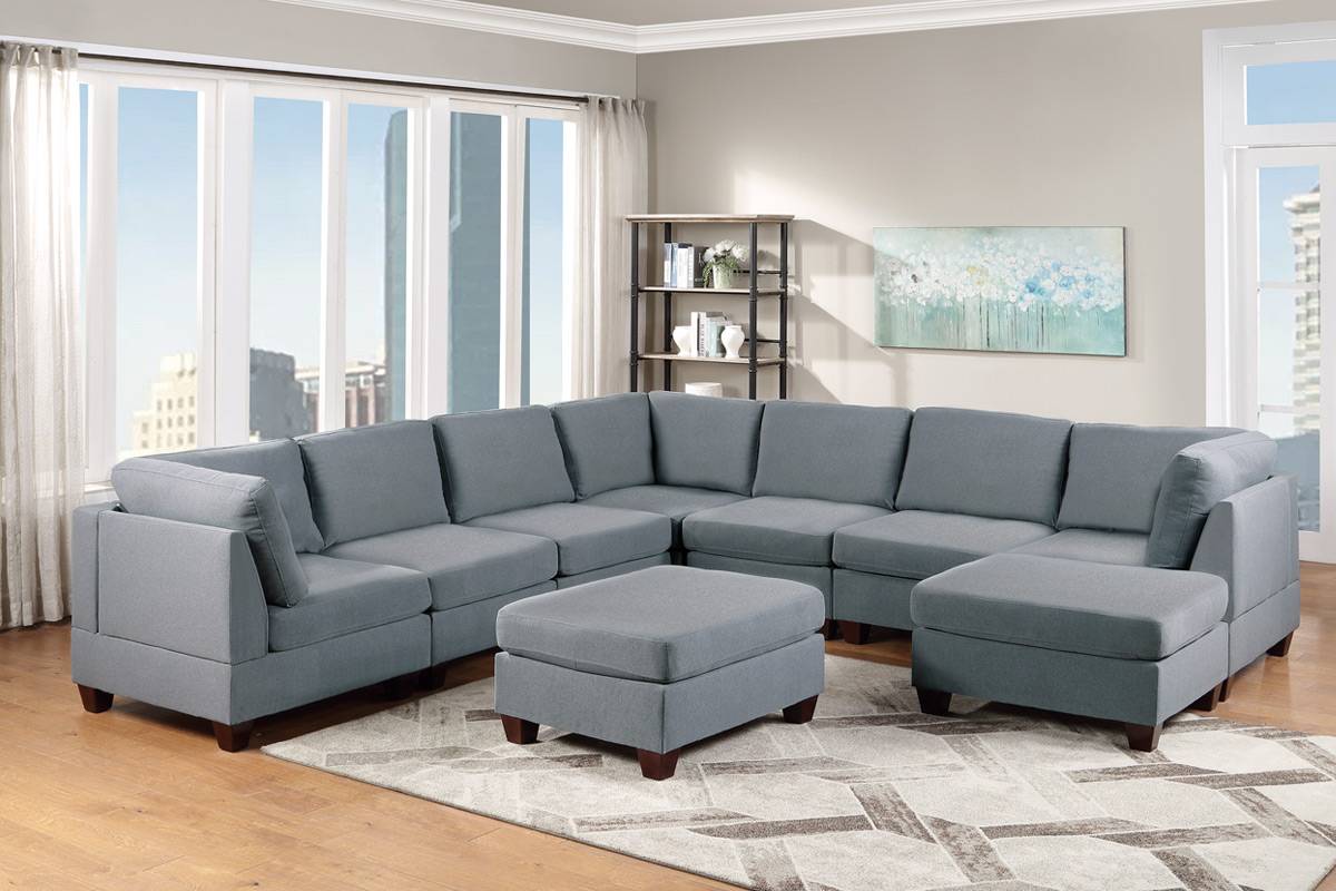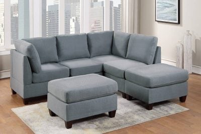 The Medfield modular gray sectional sofa set is the perfect choice for making your living room fun and spacious. The soft fabric is easy to maintain, and the extra cushions just make a movie night with friends more comfortable than ever! Choose from singular pieces to create a sectional or select an already configured setup. Including corner sofas, armless chairs, and a sturdy ottoman in this sectional set, you can creatively arrange it based on your need.