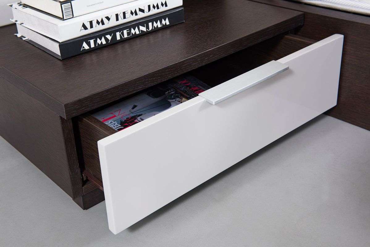 The Modrest Gamma Modern Brown Oak Bed with Storage is a multi-purpose masterpiece that combines style, comfort, and practicality. With air-lift slats for under-bed storage, soft-closing single drawer nightstands on both sides, and a glass shelf on the left facing side, this bed offers ample storage and convenience. Finished in a sleek brown oak wood with light grey accents and a lighted headboard and side rail, the Modrest Gamma Bed creates a warm and inviting ambiance in any contemporary bedroom. Upgrade your sleep sanctuary with this stylish and functional bed.
