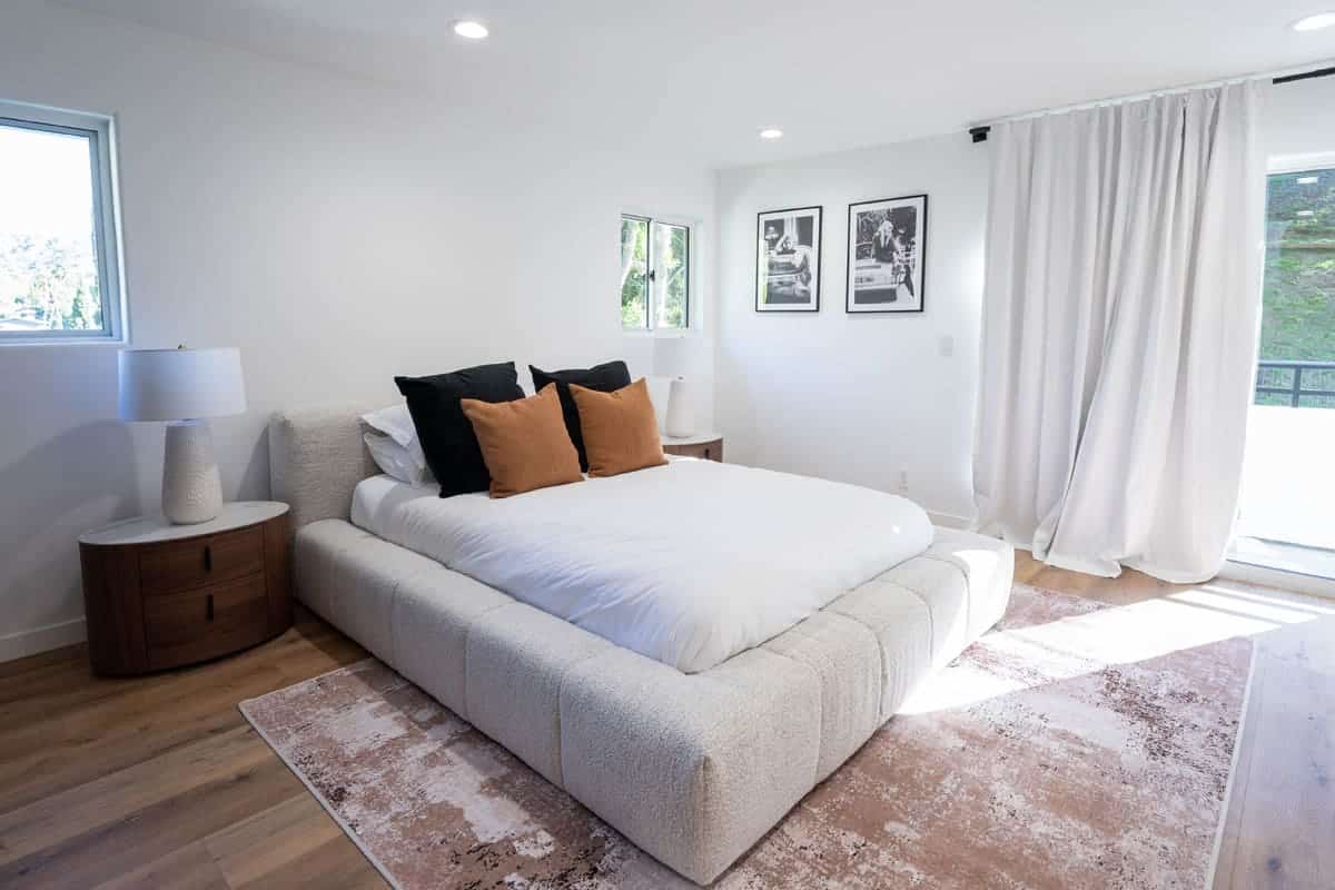 Experience the combination of simplicity and elegance with the Modrest Lamont Bed. This low-profile padded bed showcases a soft textured cream fabric that radiates a refined charm. The Lamont Bed’s most striking feature is its broad headboard, adorned with channel tufting. This design element adds a touch of sophistication and visual interest to the bed’s overall aesthetic. Wrapped in a modern cream white fabric, the Lamont Bed effortlessly brings a sense of tranquility and warmth to any bedroom. Its color palette makes it a versatile piece that fits seamlessly with different décor styles.With its low-profile design, the Lamont Bed is an excellent choice for modern homes. It contributes to a minimalist appearance, creating an illusion of more space, thus enhancing the room’s overall appeal.
