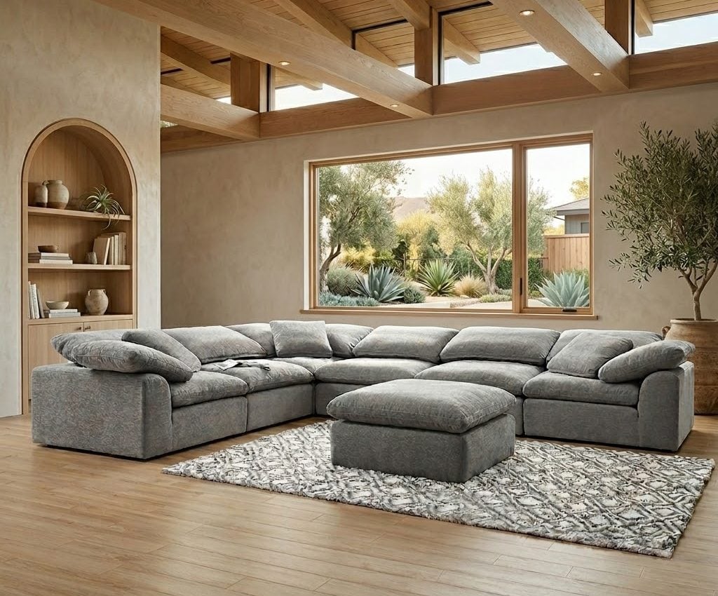 The Naveen Gray Modular Sectional Sofa boasts a beautiful, unique design that blends contemporary and modern elements. Upholstered in a light brown linen fabric, this modular sofa offers a touch of refined elegance. Sink into the down feather and foam seating for true plush comfort, while the solid wood inner frame and detailed stitching ensure this sofa is built to last. The versatile modular design allows you to choose from wedge, armless chair, and ottoman pieces to create the perfect sectional for your space.