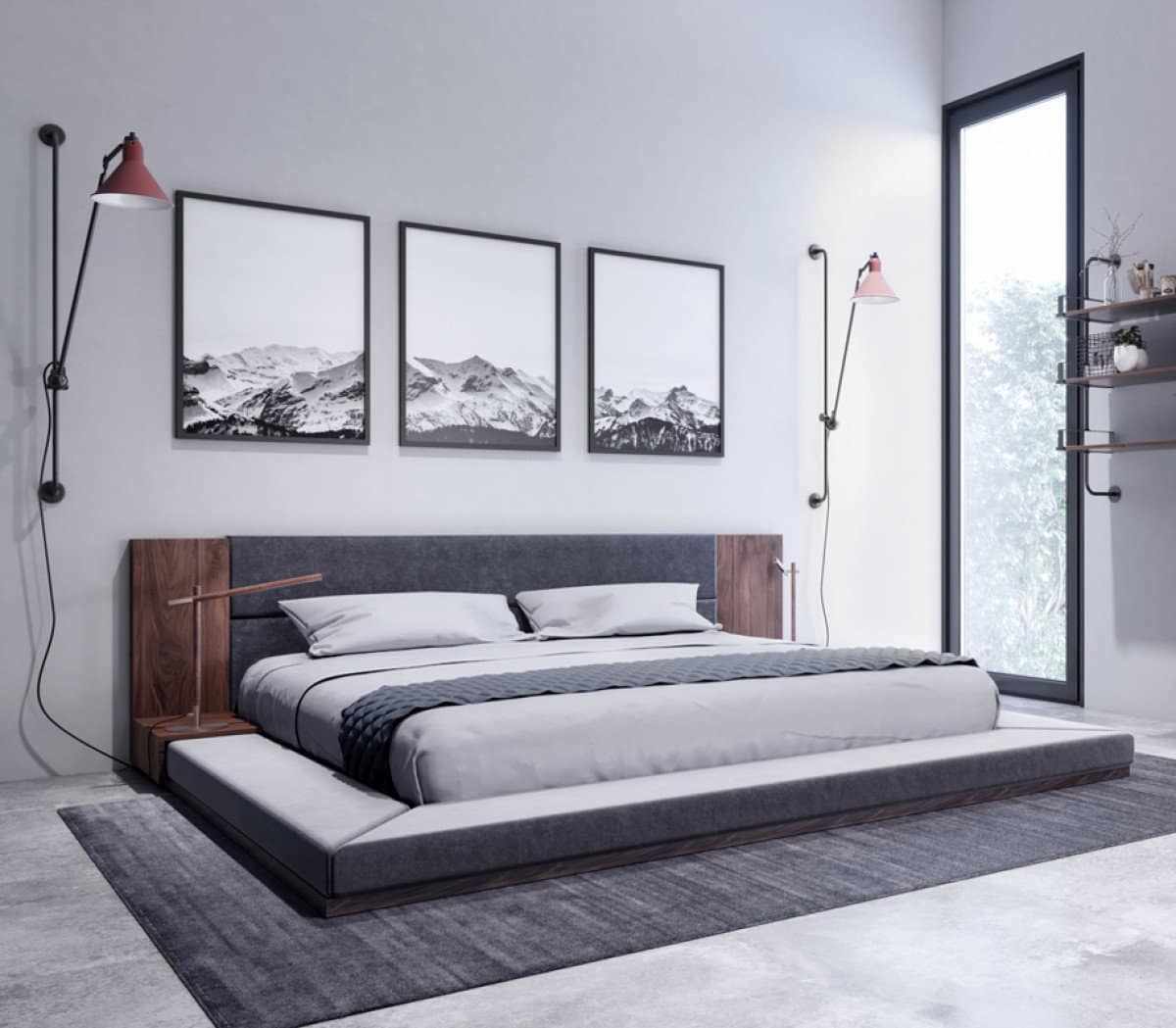 The Nova Domus Jagger Modern Dark Grey & Walnut Bed features a unique bed platform design. With a platform edge that can be used as a nightstand shelf and all around ledge to make this bed feel unique and spacious.