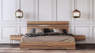Discover the Nova Domus Lorenzo Italian Modern Bed. A beautiful juxtaposition of light oak finish and stainless steel accents, this bed radiates elegance. Its expansive headboard, adorned with a stainless steel accent, complements the organic wood textures, creating a piece that’s both rustic and modern. Supported by cube-shaped stainless steel legs and crafted meticulously in Italy, the Lorenzo promises both style and durability. No box spring is required, thanks to the included slats. Dive into the world of Italian luxury with Lorenzo.