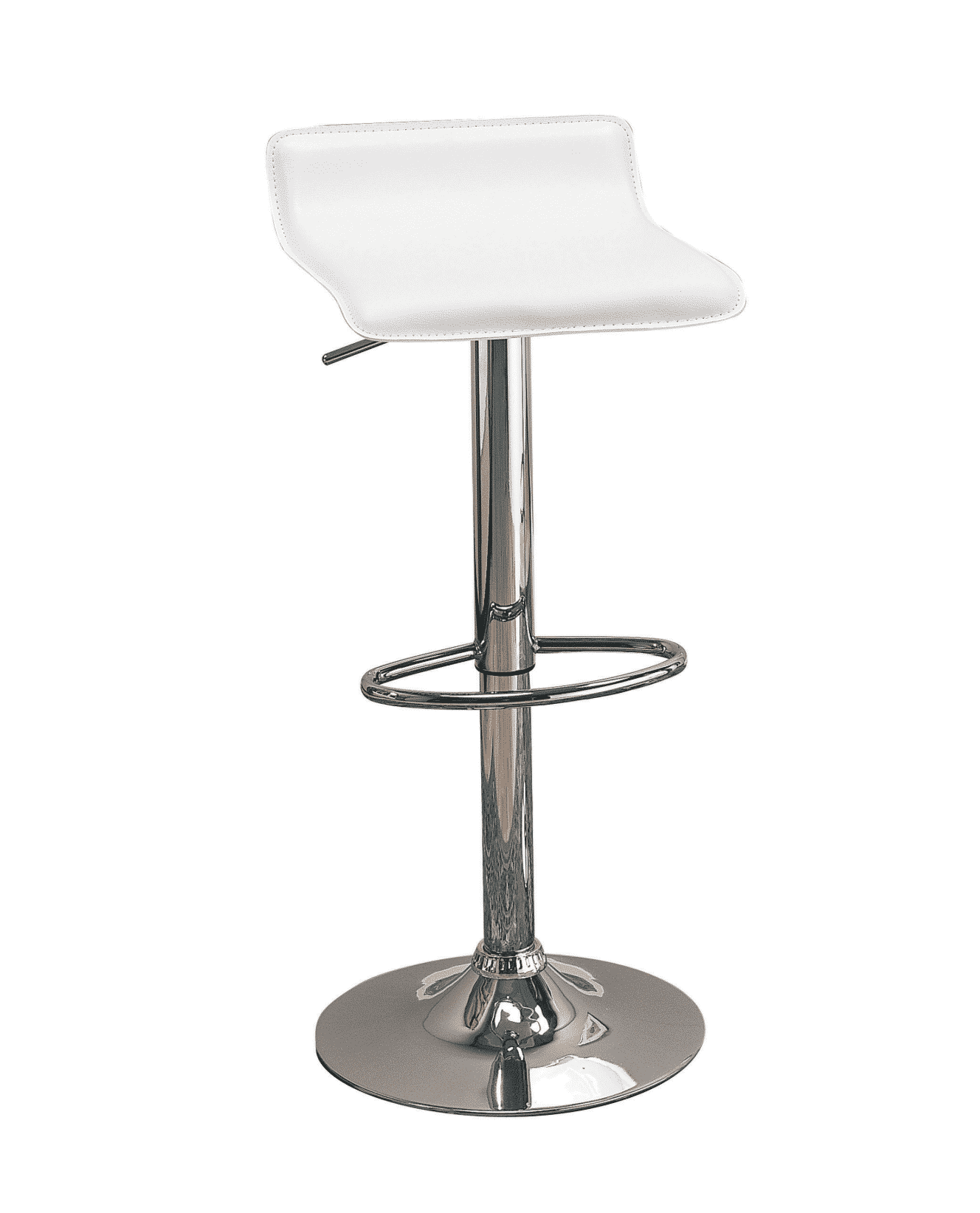 Gorgeously modern, this adjustable barstool is a sleek upgrade. Beautiful at a kitchen island or home bar, the stool is height adjustable to suit bar and counter height surfaces. Minimalist seat features appealing curves with just the barest hint of a back. Pedestal base features a gleaming chrome finish and rounded foot. A built-in footrest is ideal for leisurely enjoyment of a latte or glass of Merlot.