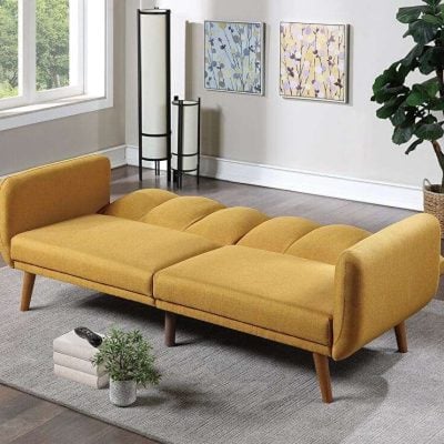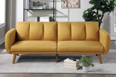 Let yourself sink into this extra cushion and ultimate comfort sofa. This beautifully patterned furniture can be a perfect spot for a hang out with friends, and it can turn into a guest bed for your overnight guests. The wooden leg provides stability yet matching with the elegant fabric, it is an exquisite adjustable sofa that can improve your living space.