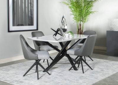 Looking for a dining table that makes a statement? The Paulita Rectangular Dining Table in White and Gunmetal might be the showstopper you’ve been searching for. This White Marble Dining Table combines contemporary design with classical elements, creating a unique focal point for your dining area.