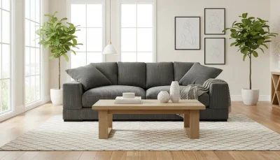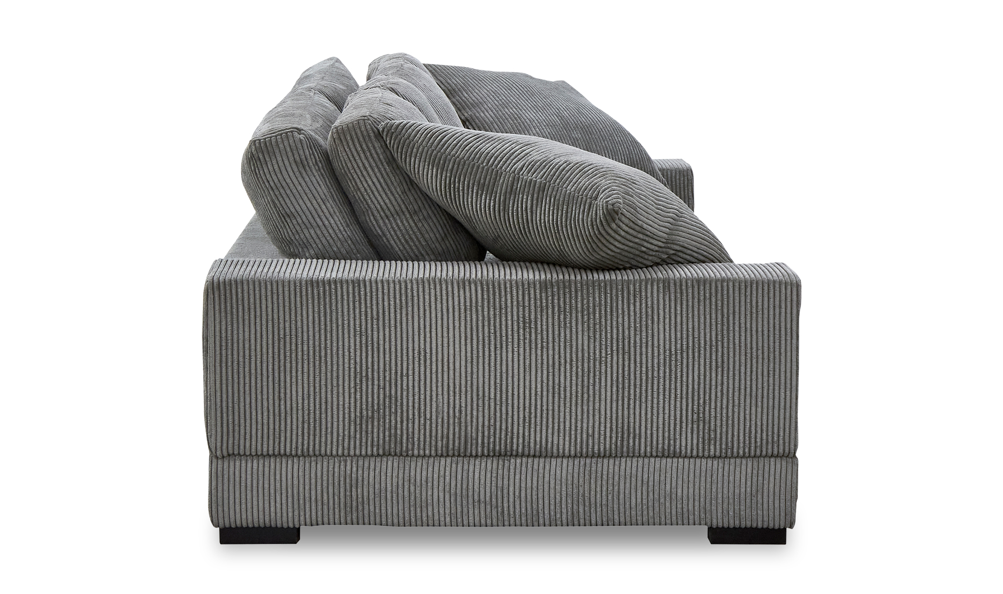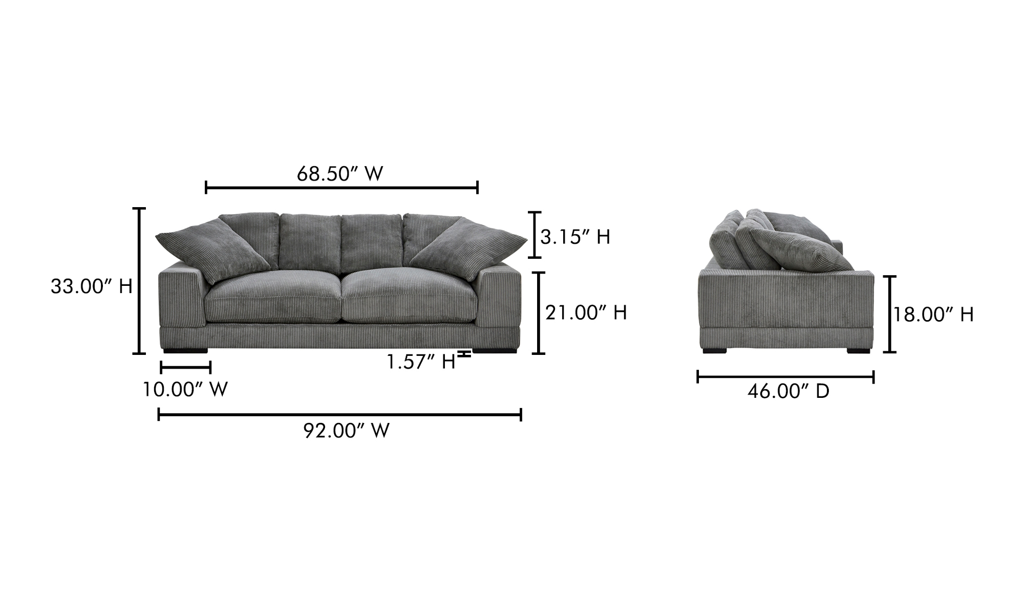 The Plunge Charcoal Gray Deep Plush Sofa blends modern style with luxurious comfort. Designed with deep seating and soft padded cushions, it provides an inviting space for relaxation. Upholstered in 100% polyester fabric, it offers durability and a smooth touch. The solid eucalyptus and plywood frame ensure long-lasting stability, while the reversible foam-filled cushions add versatility. Protective leg glides prevent floor damage, making it a practical yet elegant choice. Whether you’re looking for a plush couch or a gray sofa with deep padding, this piece is designed for both style and comfort in any living space.