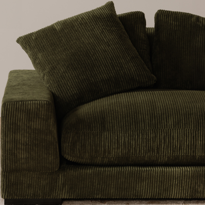 The Plunge Green Deep Plush Sectional Sofa combines modern style with luxurious comfort. Designed with deep seating and plush cushions, it provides an inviting space for relaxation. The reversible flip chaise allows for left- or right-side orientation, making it adaptable to any space. Upholstered in soft corduroy polyester fabric, it offers durability while maintaining a cozy feel. The solid eucalyptus wood and plywood frame ensure stability, while removable high-density foam cushions enhance comfort. Whether you’re looking for a green sectional with chaise or a deep sectional, this piece blends style and functionality for a sophisticated living space.