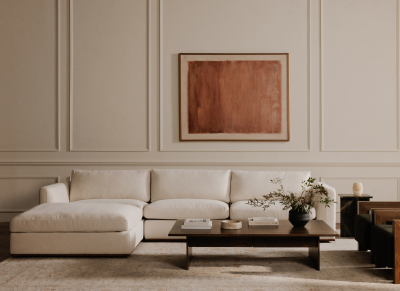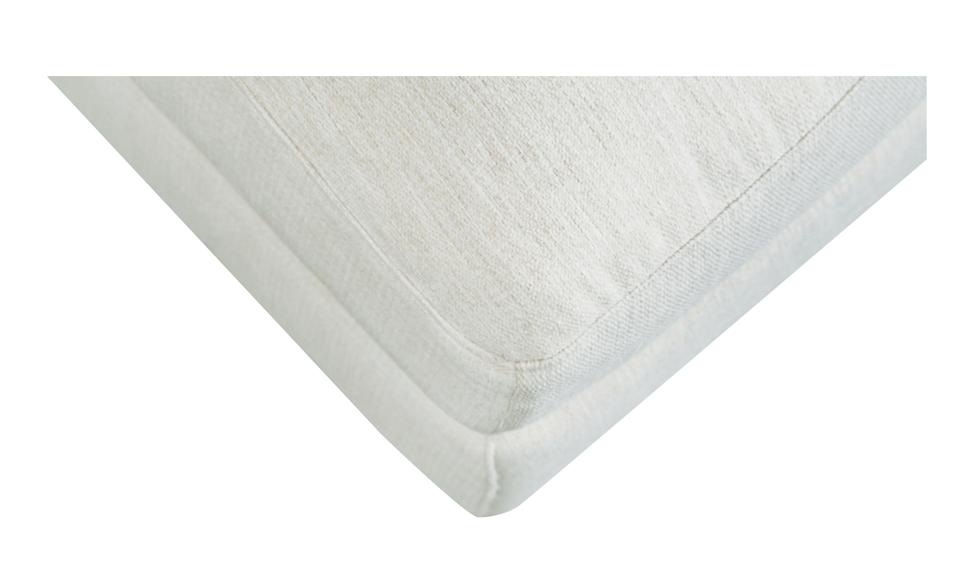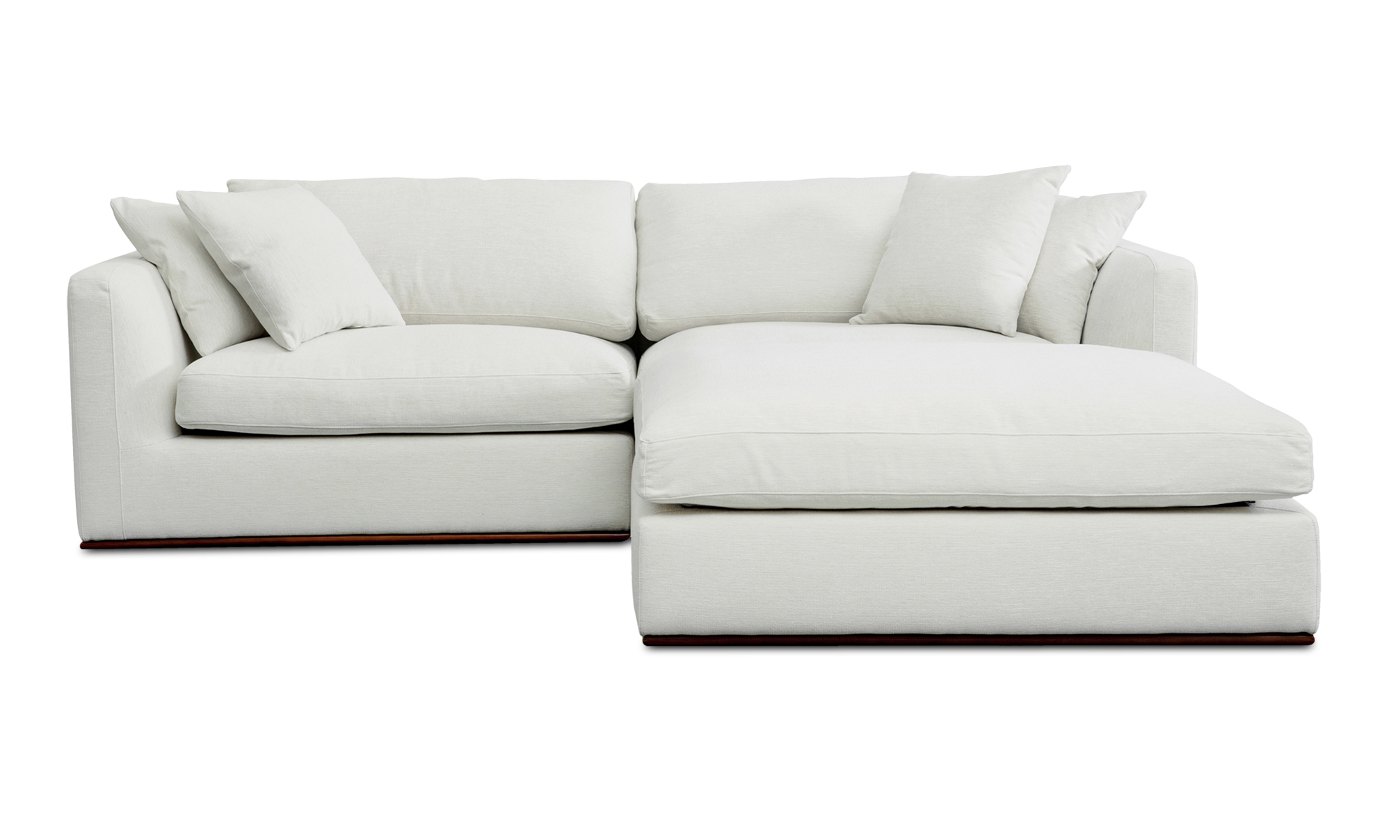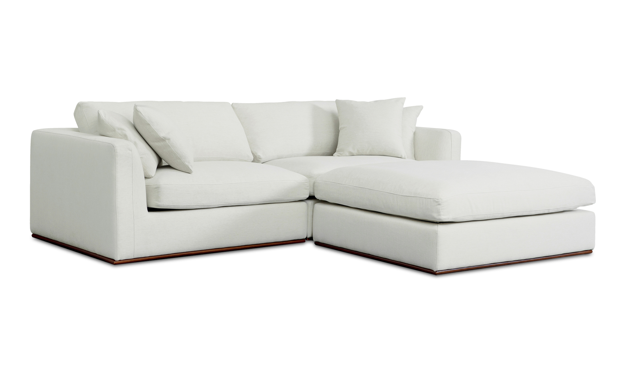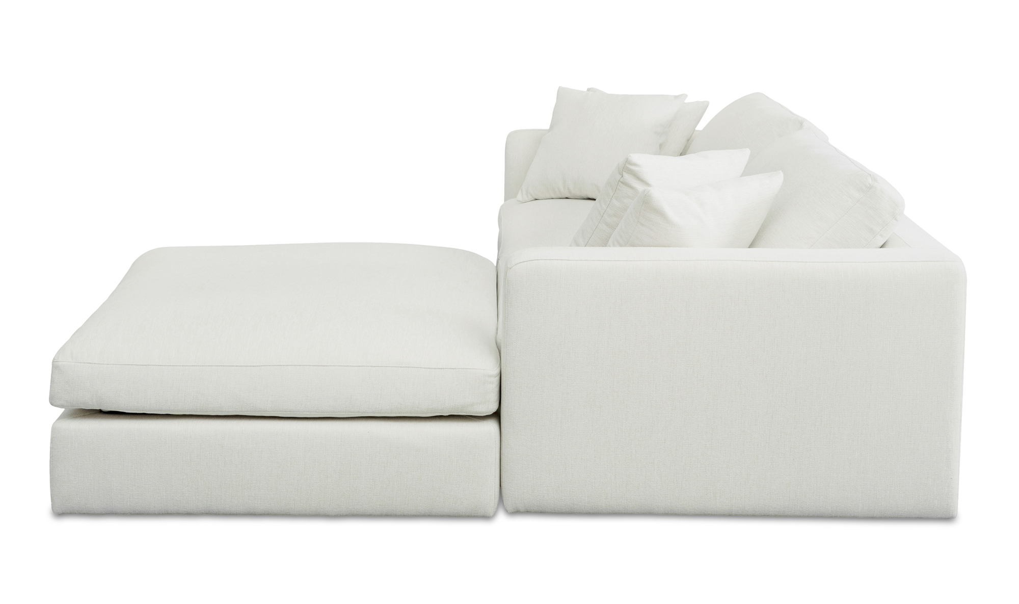 The Rue modular sectional features a generous 70% feather-fill topper within its seating, accompanied by toss cushions for an added layer of coziness. Its elegant silhouette is highlighted by a rubber wood base, creating a sleek floating appearance, all supported by subtle wooden legs. Designed with extreme comfort in mind, this modular embodies easy, neutral styling.