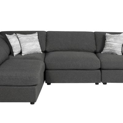 The Serene Grey Cloud Modular Sectional Sofa features ultimate comfort and customization with the Serene Grey Cloud Modular Sectional Sofa. The modular construction allows you to easily design the perfect seating area for your space. Seating is full foam wrapped in feather down, while the back cushions feature a feather down blend for exceptional comfort. All cushions are removable for easy cleaning and maintenance. Crafted with a sinuous spring base and a fully encased solid wood frame, this grey sectional offers stability and heavy-duty performance. Accent pillows in a soft jacquard are included to complete the look. Available in both beige and charcoal, the Serene Grey Cloud Modular Sectional Sofa can be tailored to suit your unique style and space requirements.