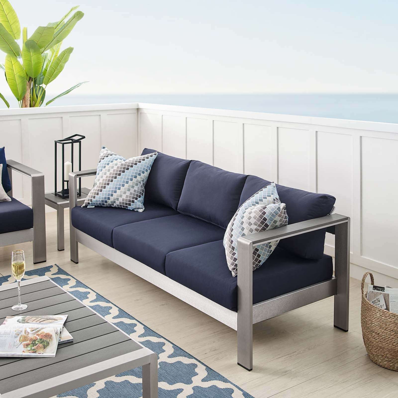Shore Sunbrella Outdoor Modern Blue Patio Sofa
