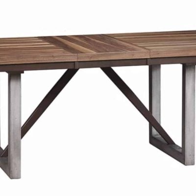The Spring Creek natural wood dining set features a table top with a beautiful open grain with natural wood flips in sappy walnut veneer. From the Spring Creek collection comes this handsome wood dining table. The rectangular table top opens up with an extension leaf for more room and happy gatherings. Top features open grain styling and natural wood flips in sappy walnut veneer. Pair with matching chairs (available separately) for a warm, inviting set. This table has a timeless appeal that’s inviting in a casual or formal dining room setting.