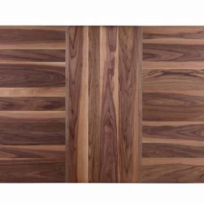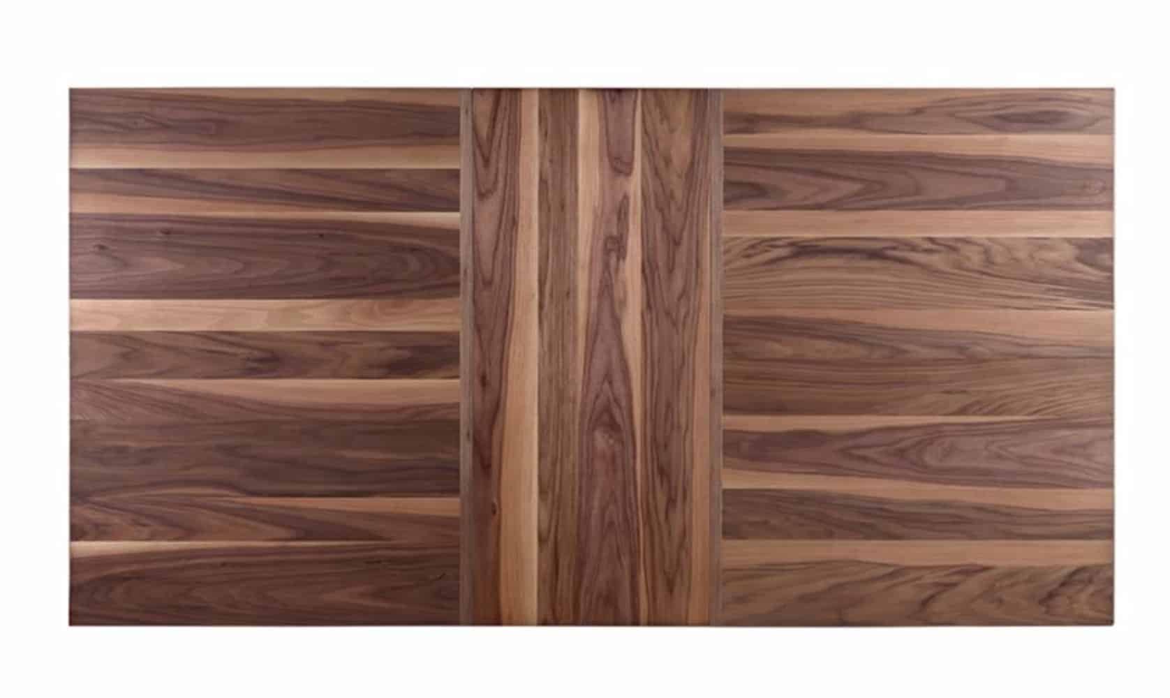 - Table top displays a beautiful open grain with natural wood curls in sappy walnut veneer