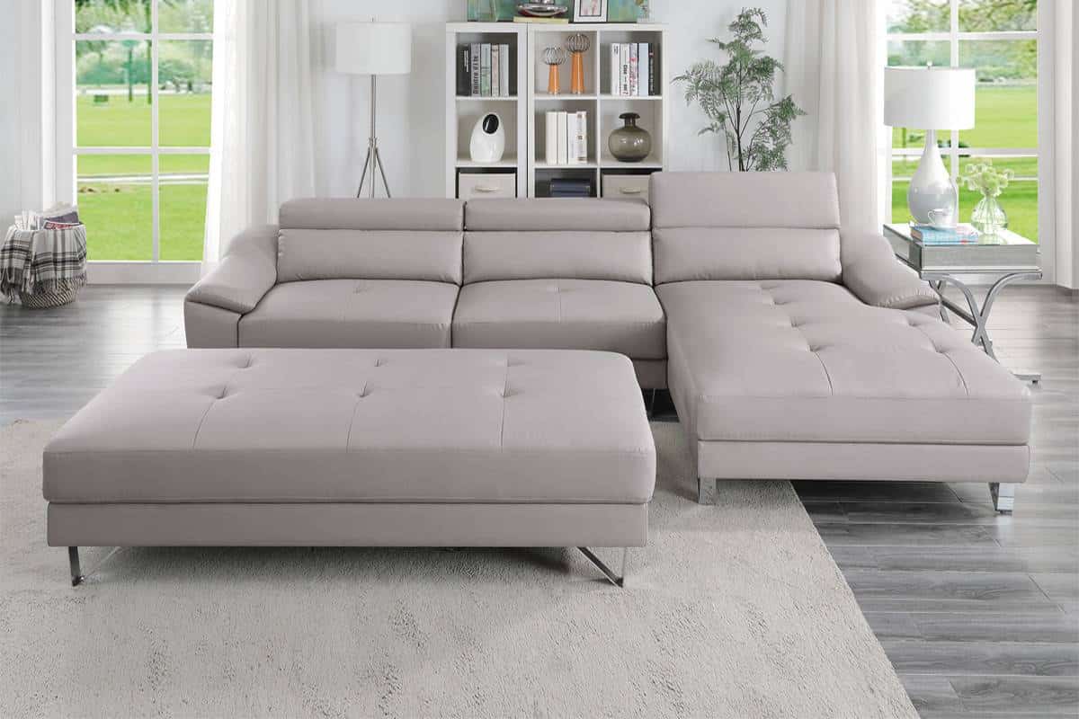 Upholstered with faux leather, this modern, high class sectional sofa set is the furniture set that you are looking for your sizable home. How can you not fall in love with this bold yet elegant sofa set? Available in espresso and grey.