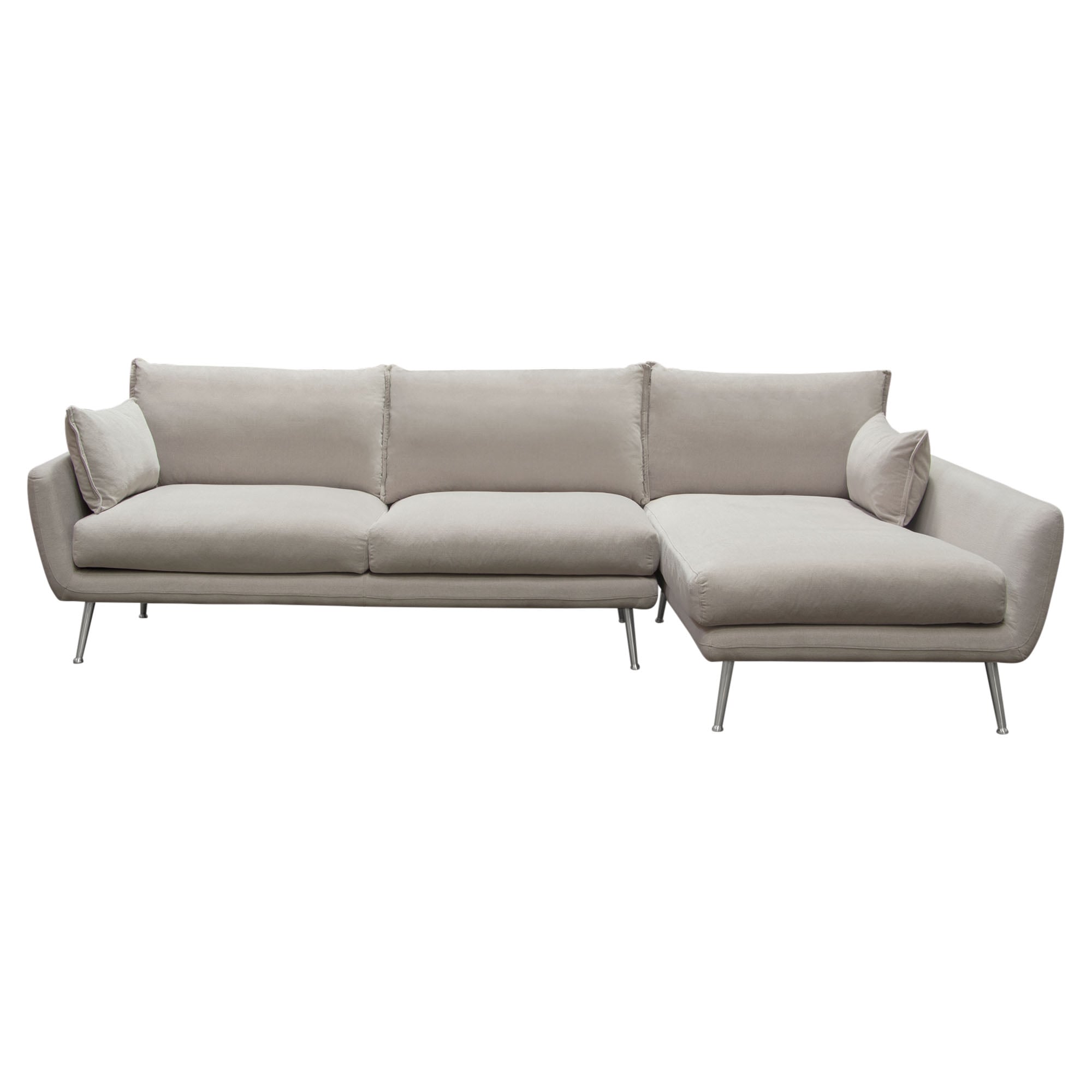 The Vantage RF Sectional by Diamond Sofa brings a sophisticated and stunning look to your home’s decor. Angular silhouettes are complemented by the plush Light Flax or Gray polyester fabric expertly tailored for a sleek, chic finish. Simple yet elegant, the angular tapered metal legs in brushed finish, will perfectly elevate the style of your space. The Vantage Collection is designed to envelop you in plush, “sink-into” feather down seating comfort for hours of relaxation.